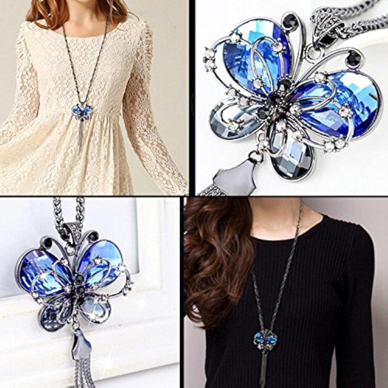 This elegant necklace features a butterfly pendant on a long chain, perfect for parties and events. It adds a touch of style to any outfit.