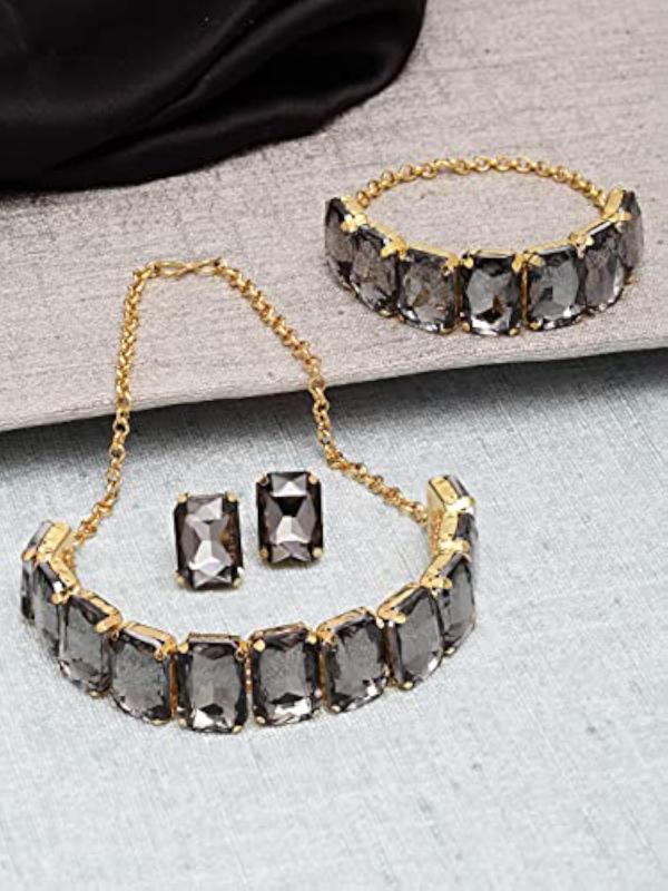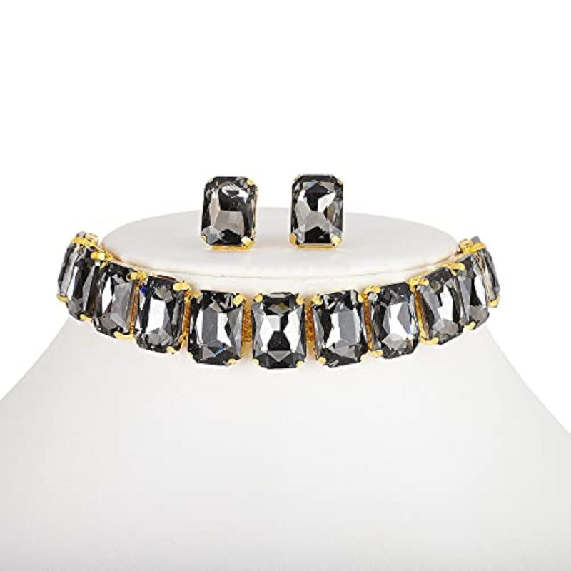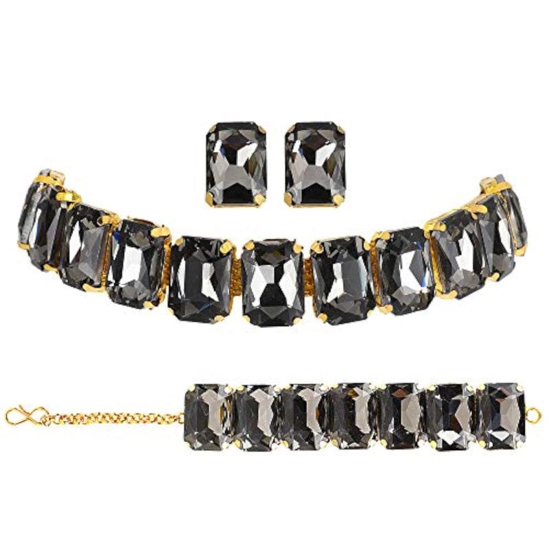Elevate your traditional look with this stunning crystal jewellery set. Perfect for special occasions.