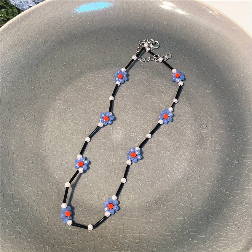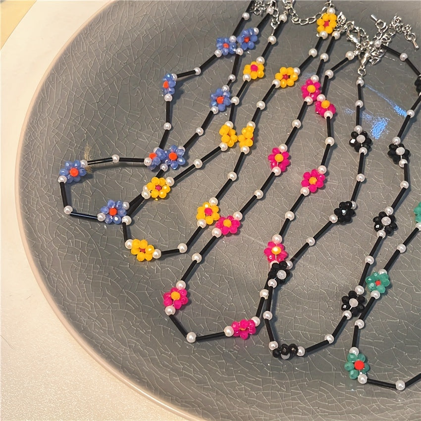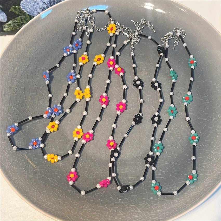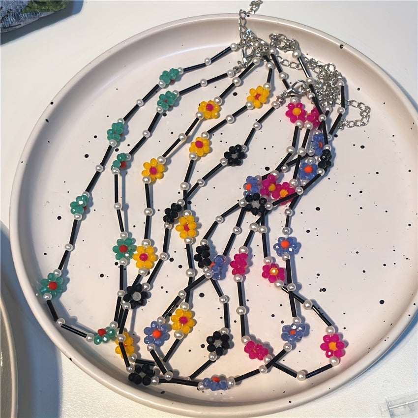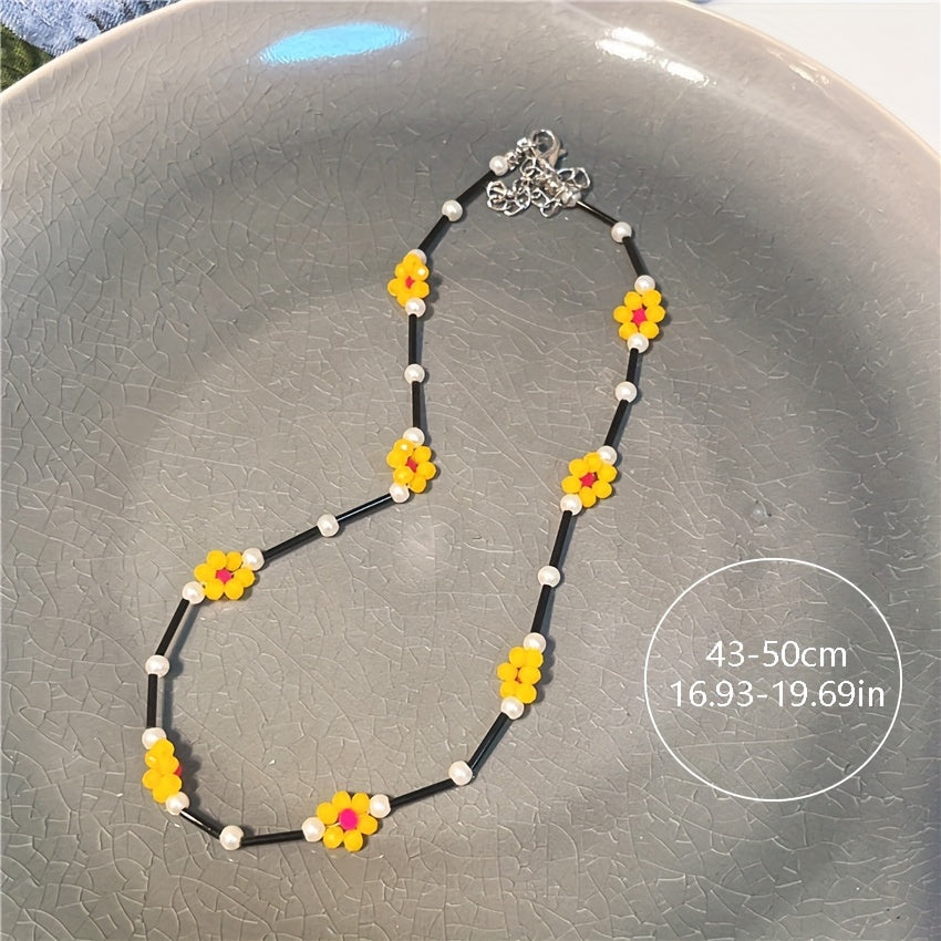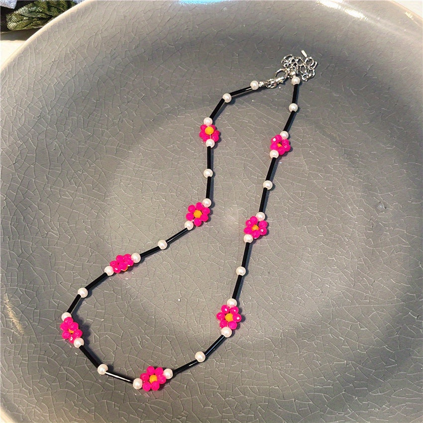 Add a pop of color to your outfit with this stylish daisy beaded necklace. Handcrafted with vibrant beads in a daisy design, this necklace is perfect for any occasion.