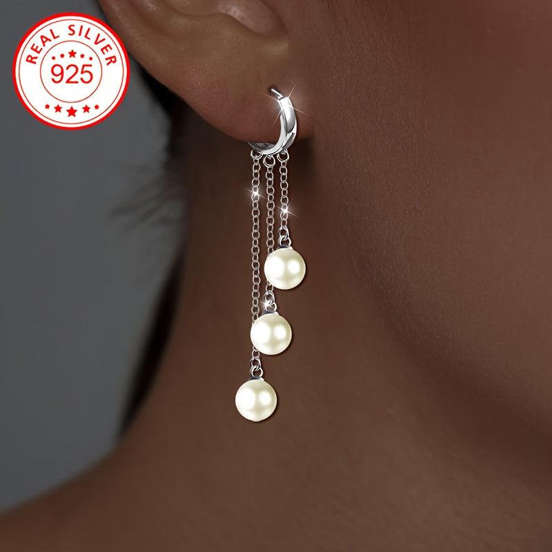Elegant pair of drop earrings made of S925 silver with tassel lines and multiple shell pearl inlays. Ideal gift for women.