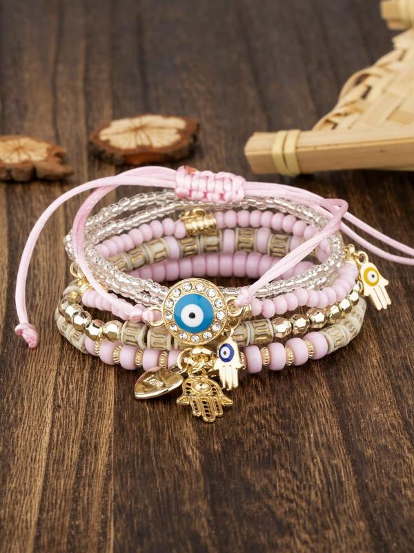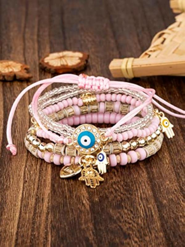 Add a touch of style and protection with this multilayer bangle bracelet featuring an evil eye design. Perfect for everyday wear or special occasions.