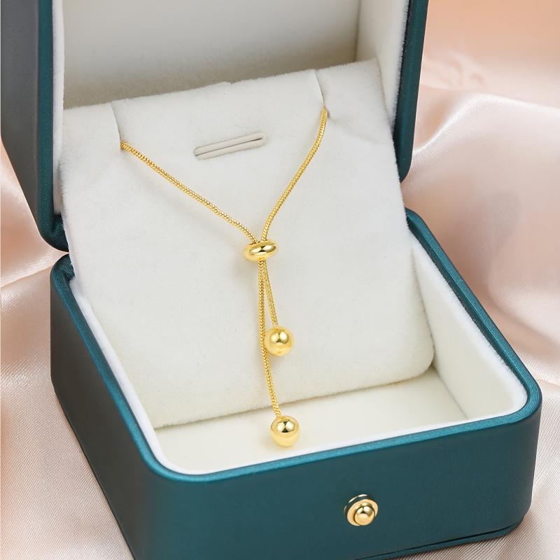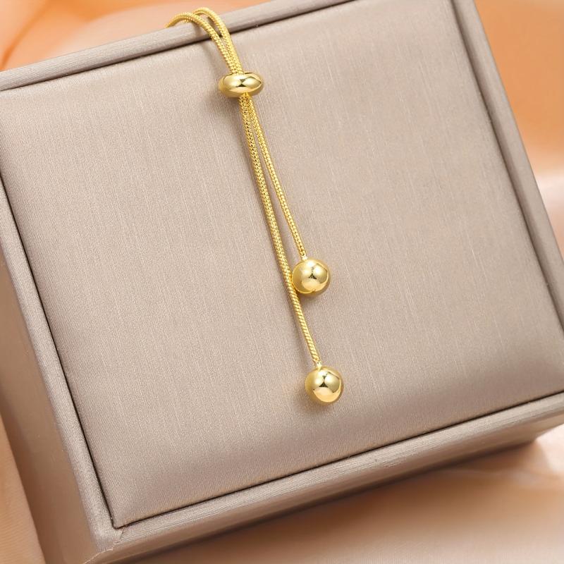 Elevate your style with this minimalist and sleek small bead stretch necklace. Its geometric design adds a modern touch to any outfit.