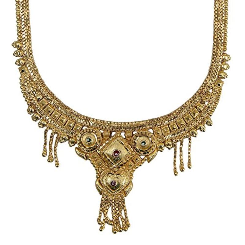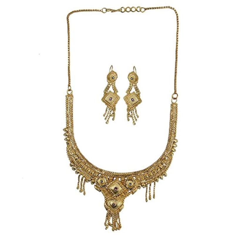Elevate your look with this elegant gold-plated necklace set, perfect for special occasions or everyday wear.