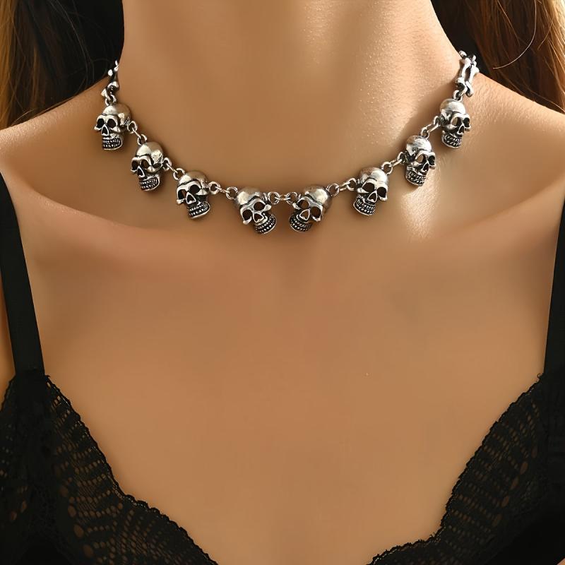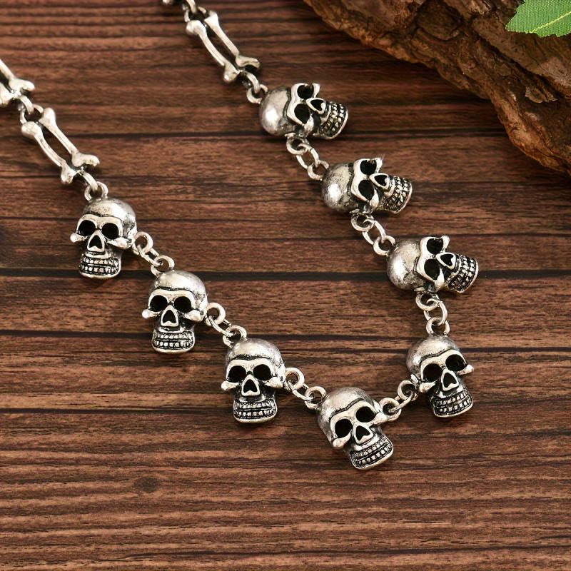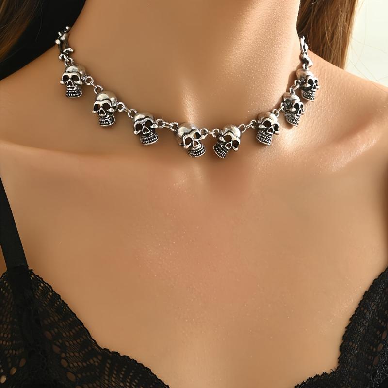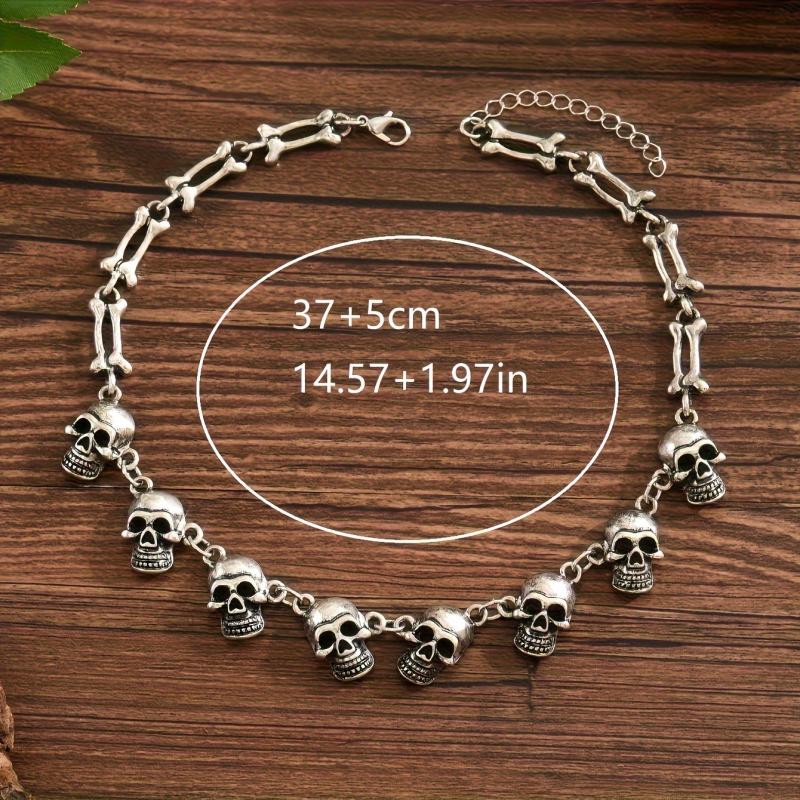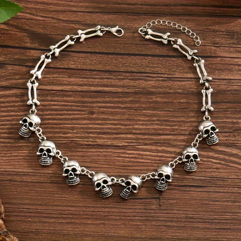 Add a touch of edge to your look with this Gothic punk skull and bone necklace. Perfect for parties or casual wear, this accessory is sure to make a statement.