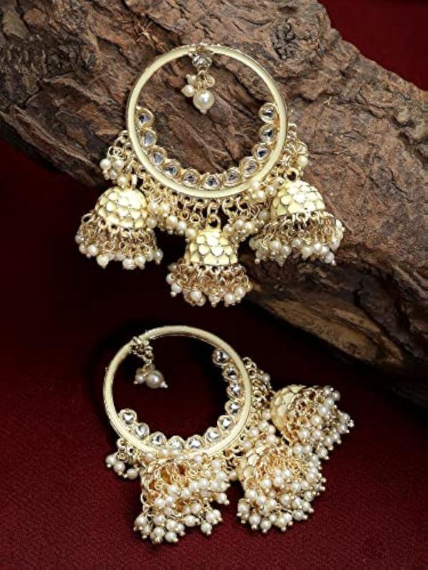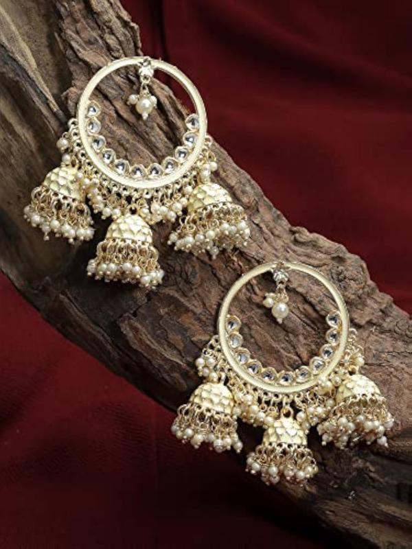 Elegant traditional Kundan jhumka earrings that add charm to your look.