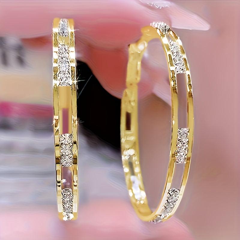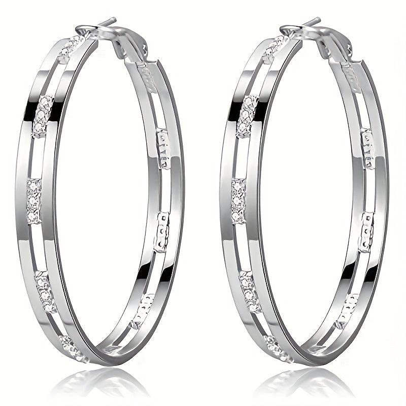 Add a touch of glamour to your outfit with these circular hoop earrings, featuring synthetic zirconia. Perfect for weddings or as a special gift.