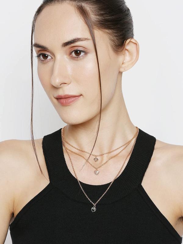 Elevate your look with this trendy layered necklace featuring strand chain charm pendants. Perfect for adding a touch of style to any outfit.