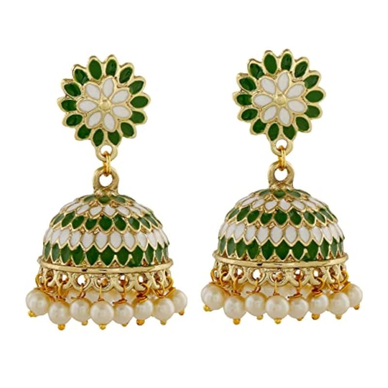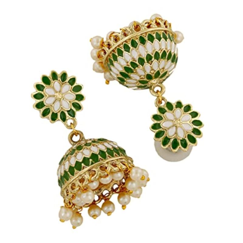 Discover elegance with these eye-catching Meenakari jhumki earrings that perfectly blend tradition and style.