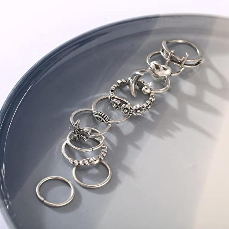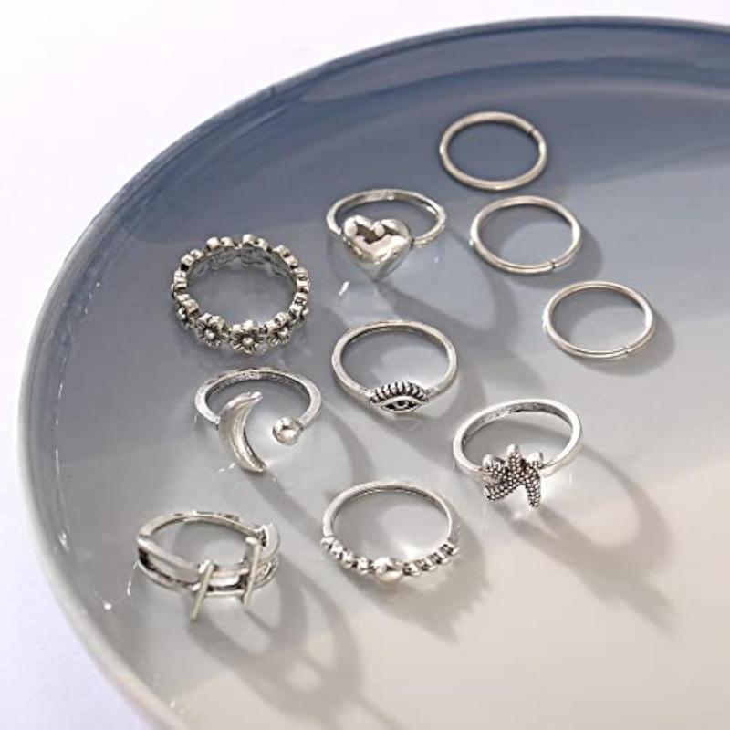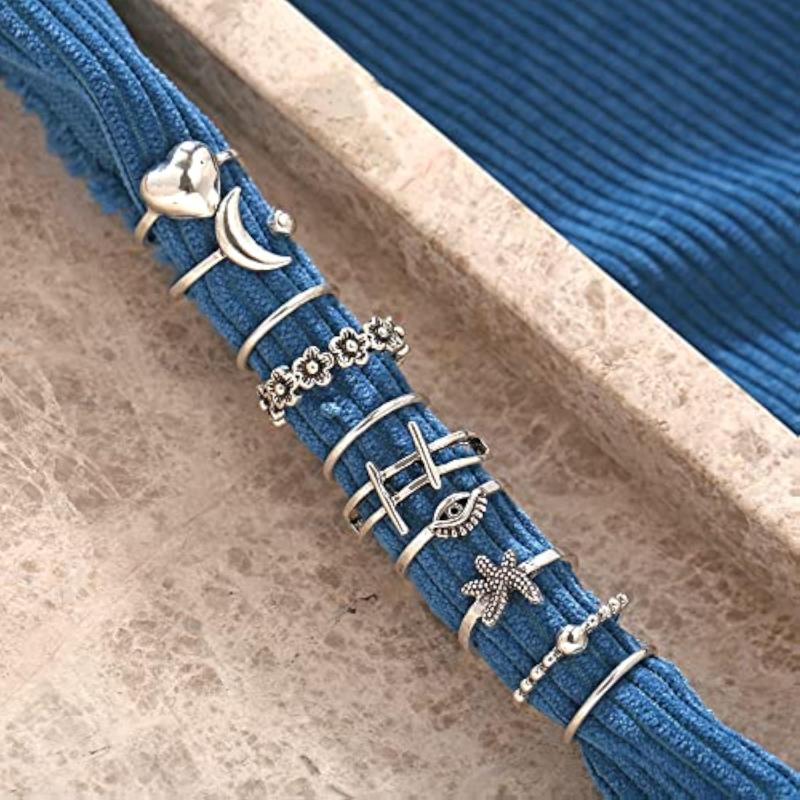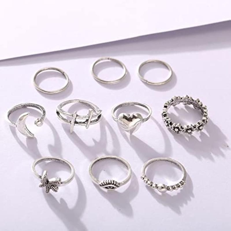 Elevate your style with this set of 10 boho midi finger rings. Crafted from high-quality metal for a unique look.