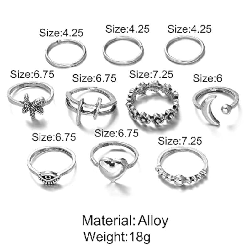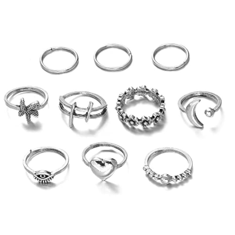Complete your boho look with this set of 10 stylish metal midi finger rings. These rings are perfect for any occasion and add a touch of glamour to your outfit.
