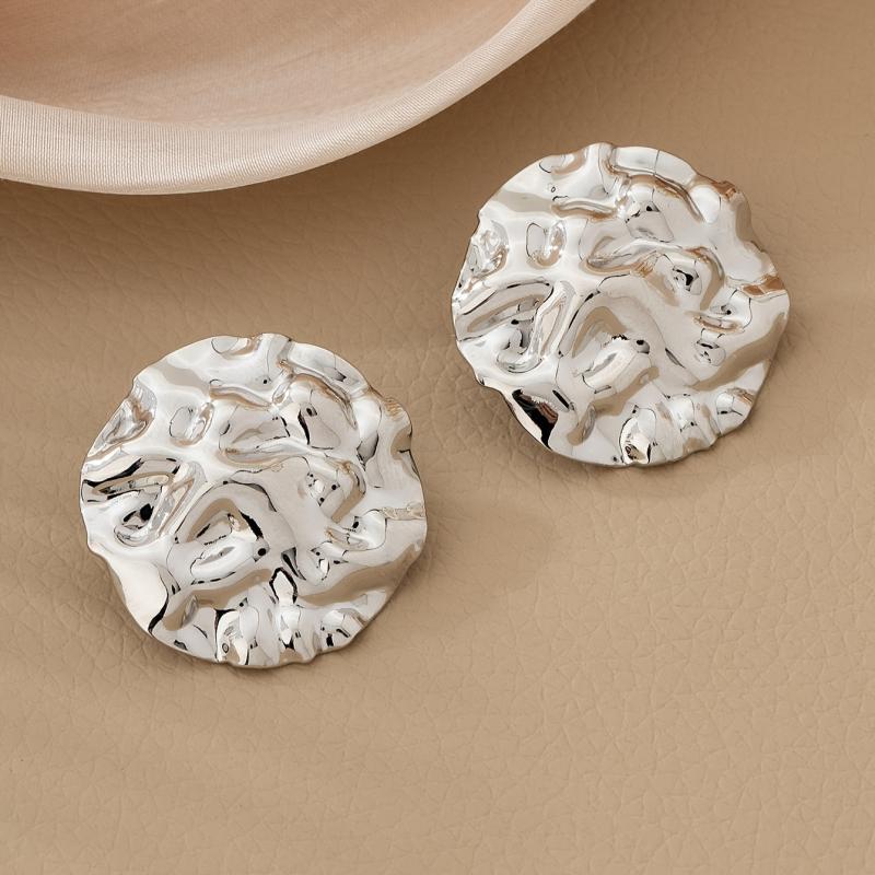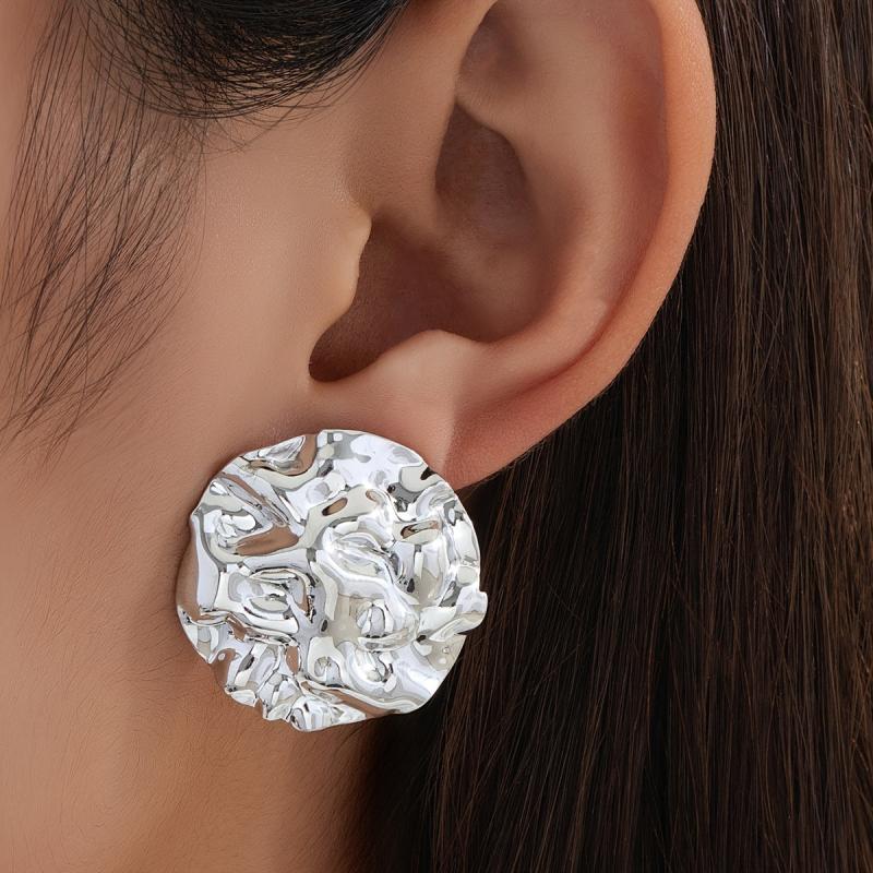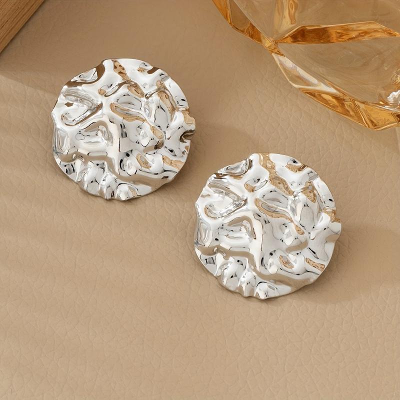 Elevate your style with these chic textured metal earrings featuring a minimalist geometric design. Perfect for adding a touch of modern sophistication to any outfit.