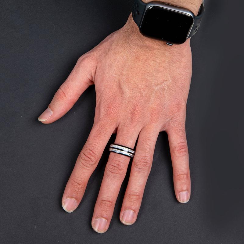 This elegant meteorite ring is perfect for weddings and anniversaries. It is 8mm wide and makes a great Christmas gift.