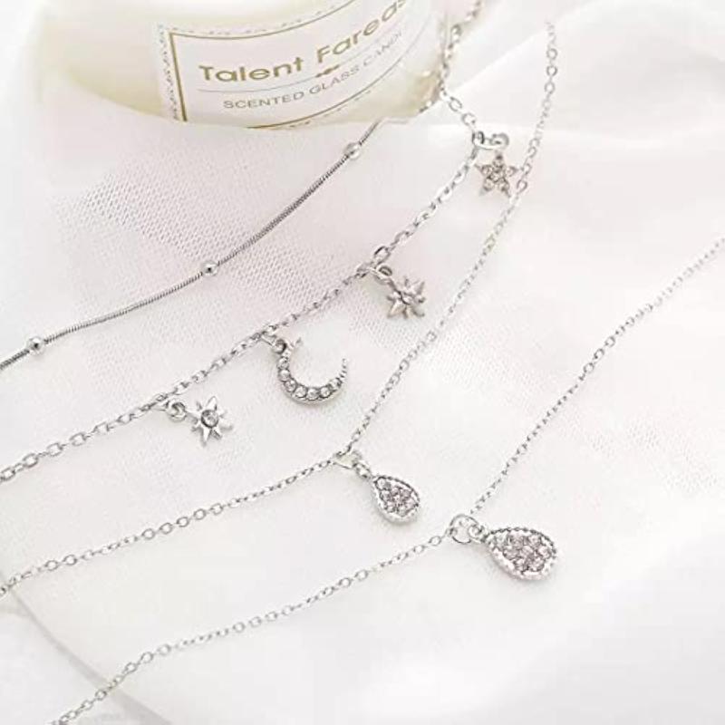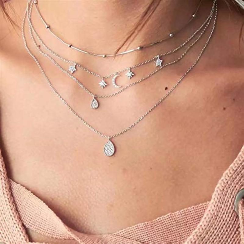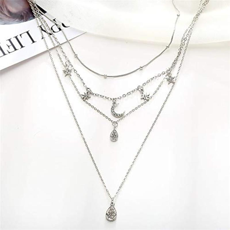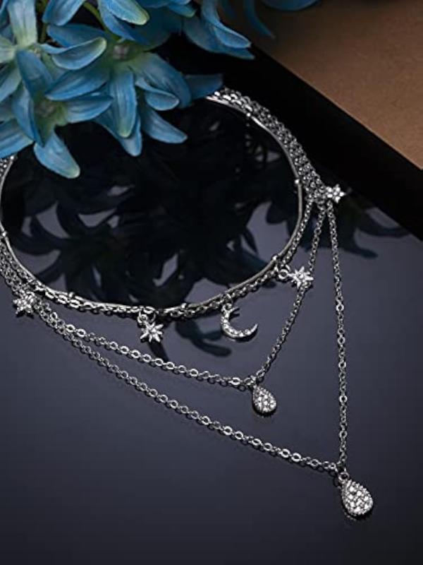 Enhance your outfit with this trendy multilayer metal chain pendant necklace that adds a touch of sophistication and style to your look.