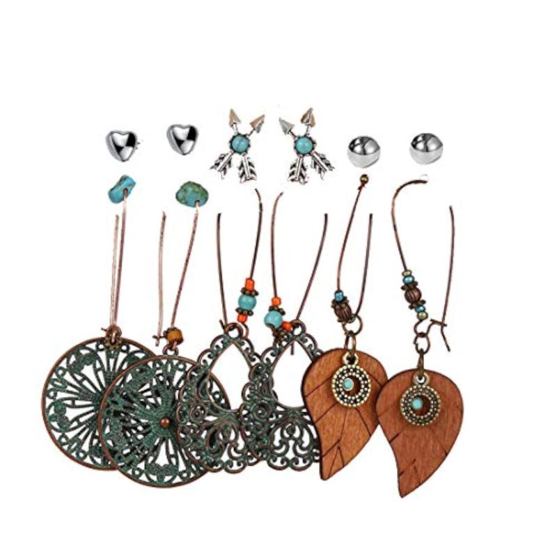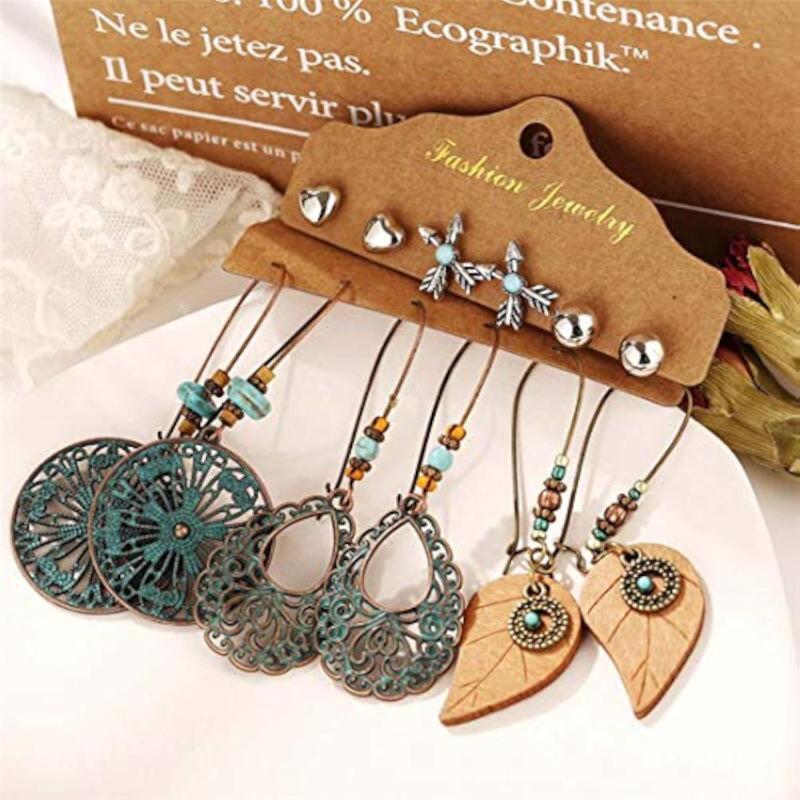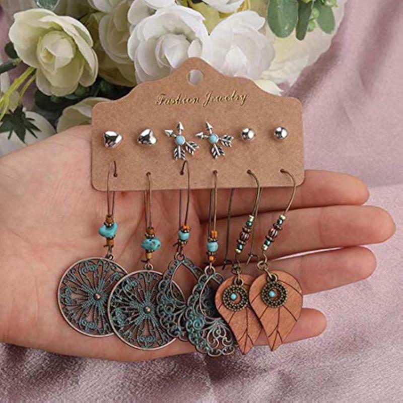 Elevate your style with this set of 6 pairs of oxidised German plated earrings. Each pair offers a unique design to match any outfit.