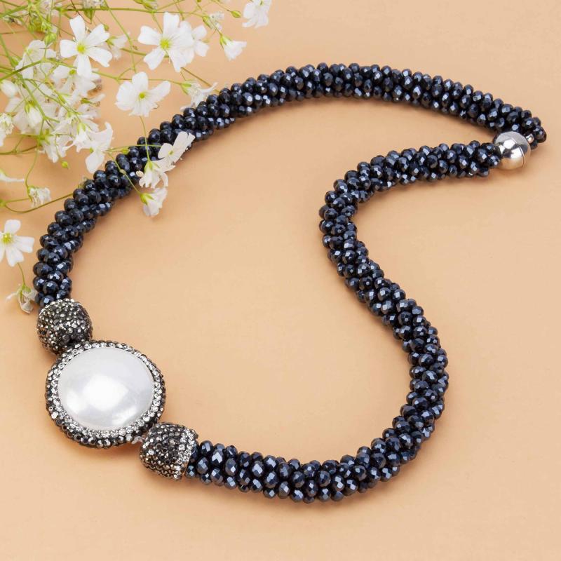 Elevate your style with this swanky necklace featuring brilliant pearls and beads. The magnetic closure adds convenience.