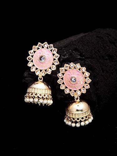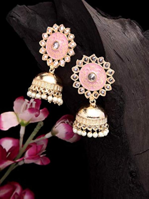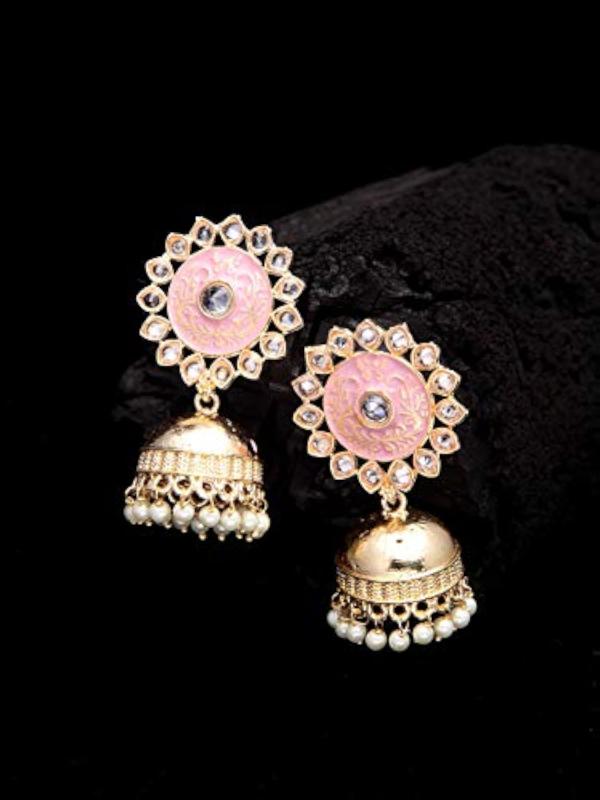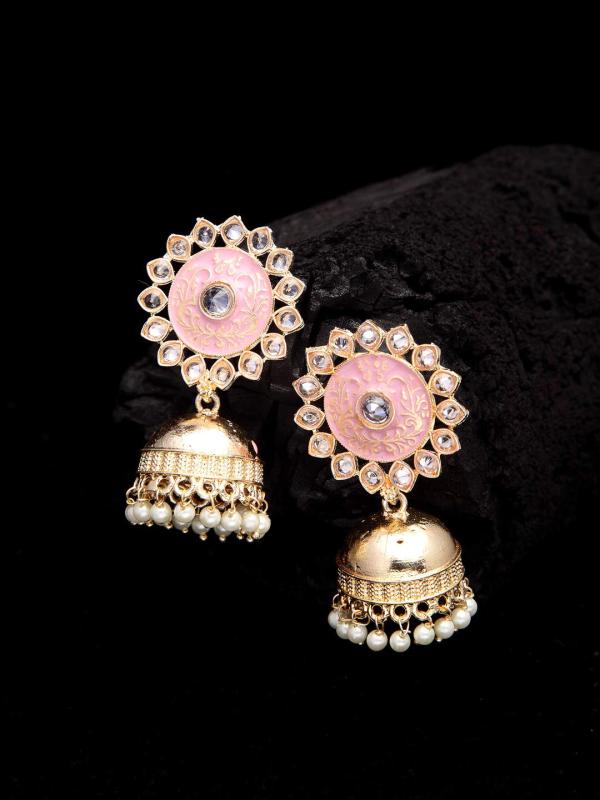 Enhance your look with these stylish pearl meenakari jhumka earrings. Perfect for traditional occasions and parties.
