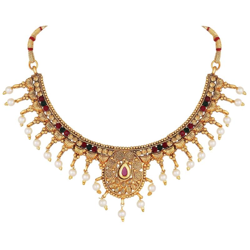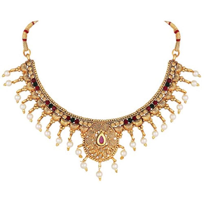 Elegant choker necklace adorned with pearls, perfect for traditional occasions.