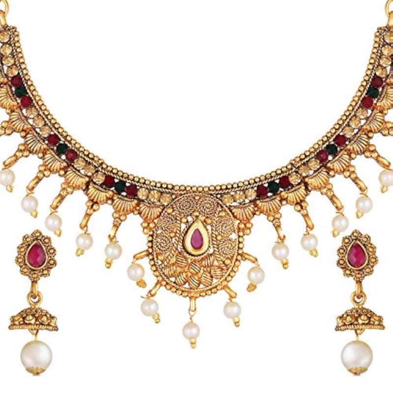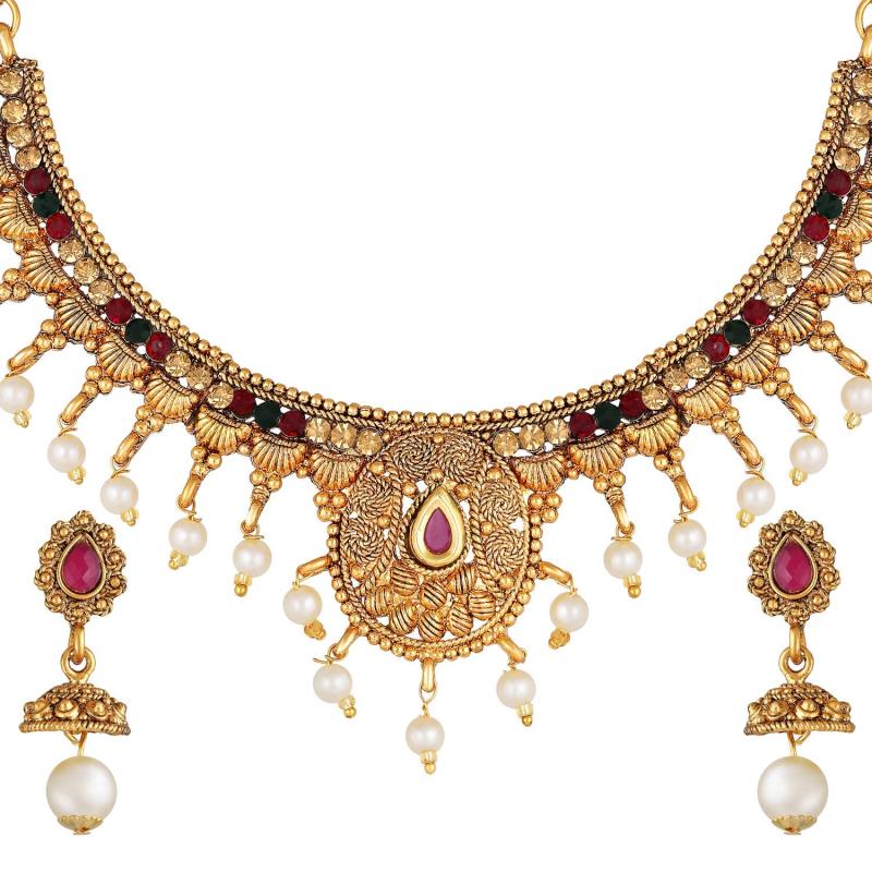 Stylish Pearl Necklace Set Traditional Plated Jewellery Set