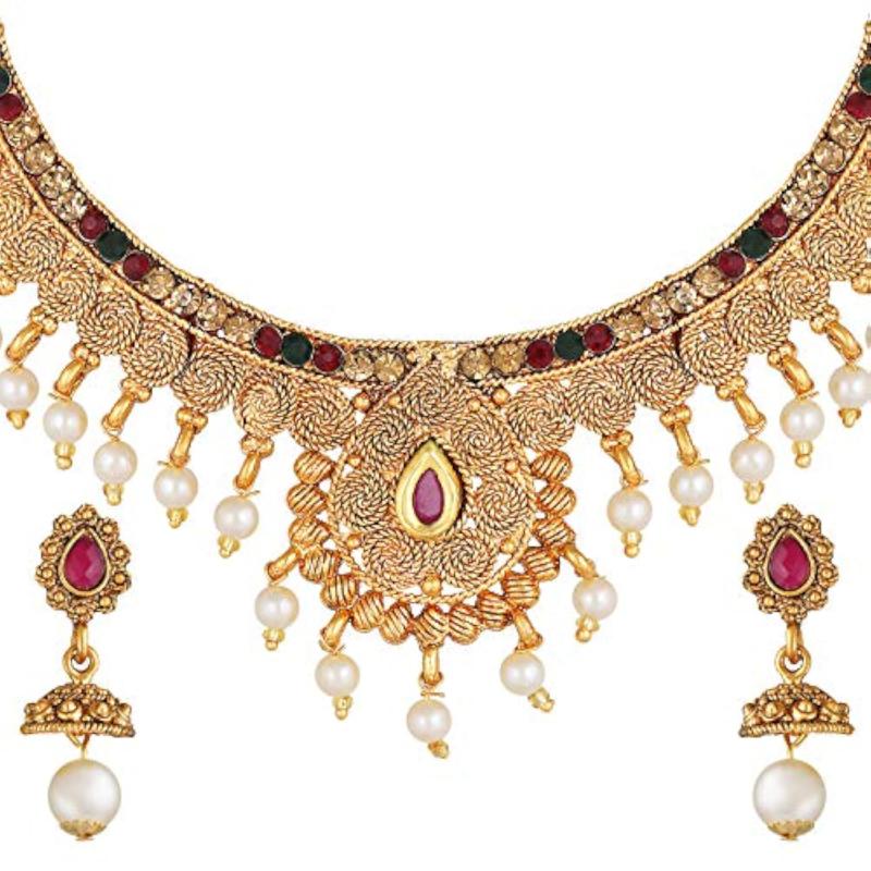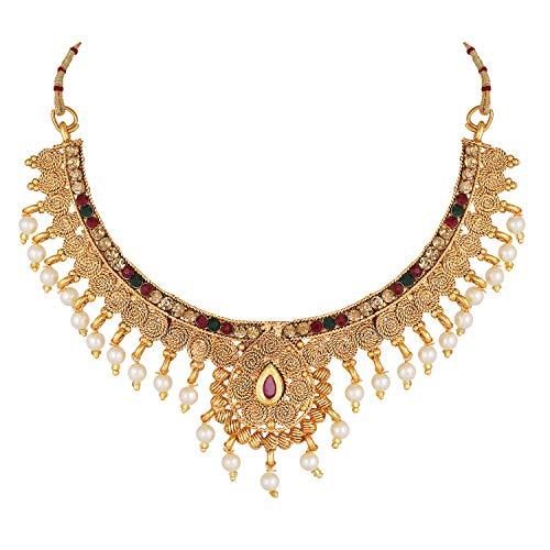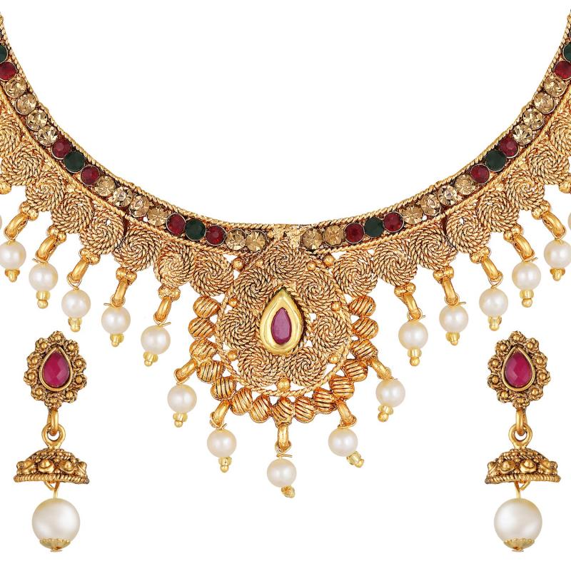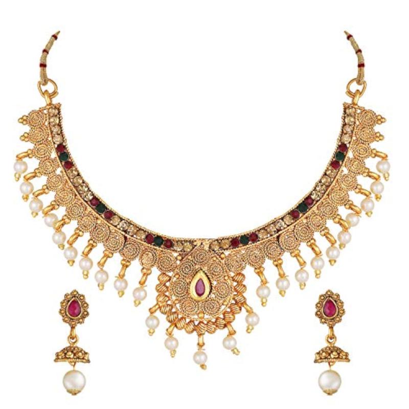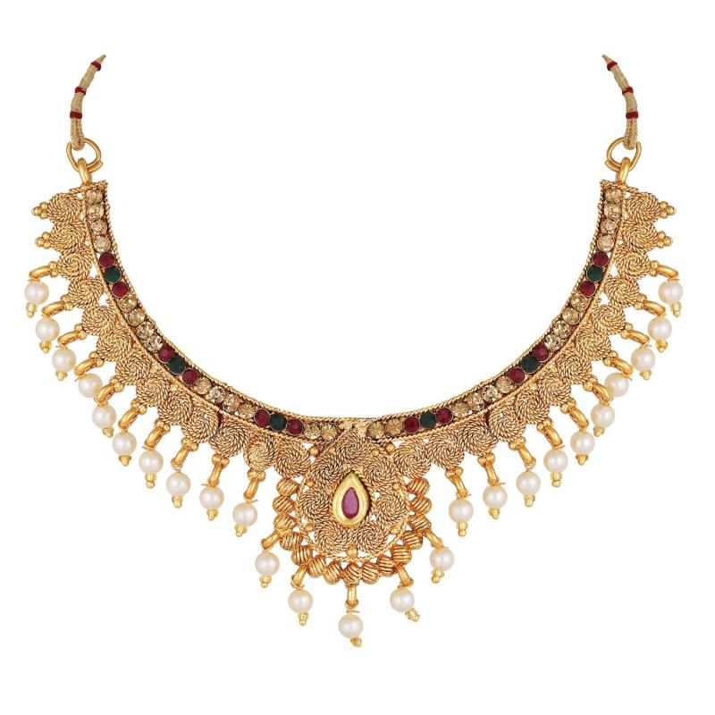 Elegant and trendy choker necklace set with beautiful pearls, perfect for traditional occasions.
