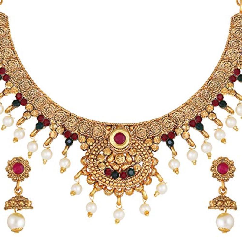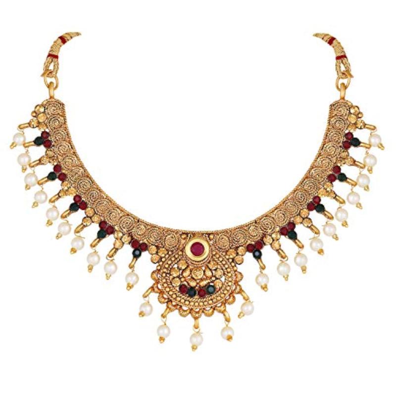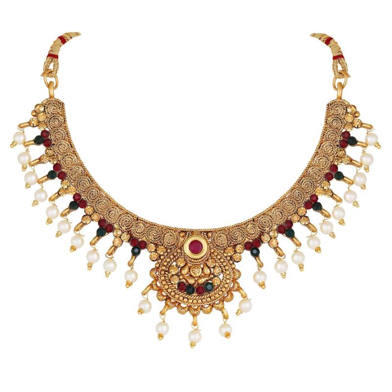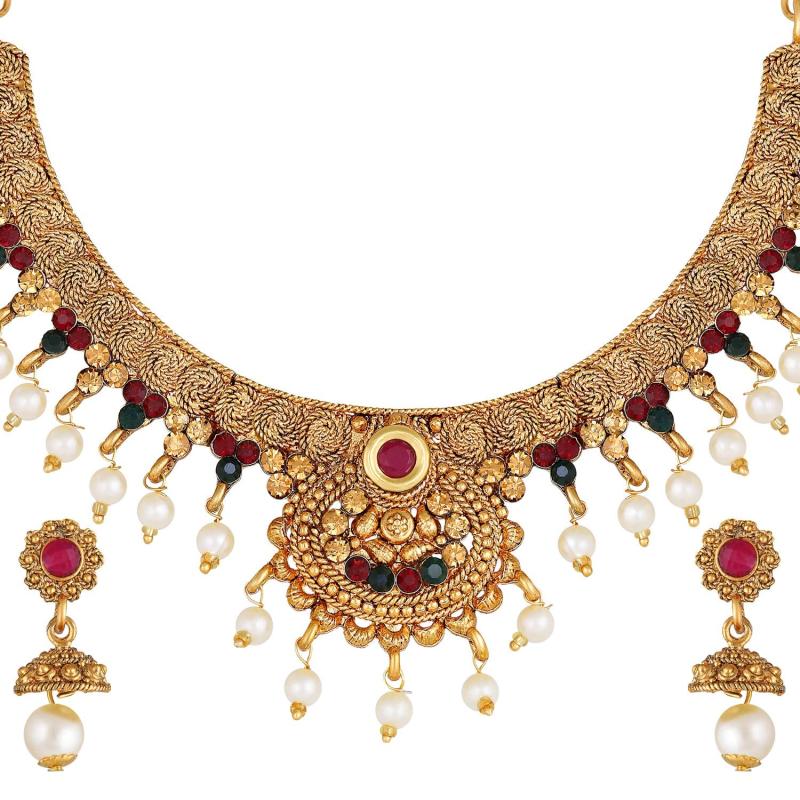 Elegant choker style necklace set with pearls for a classy look.