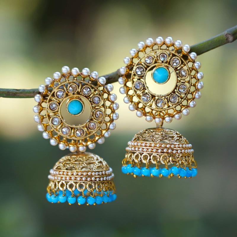 Elevate your traditional look with these exquisite pearl plated jhumki earrings.