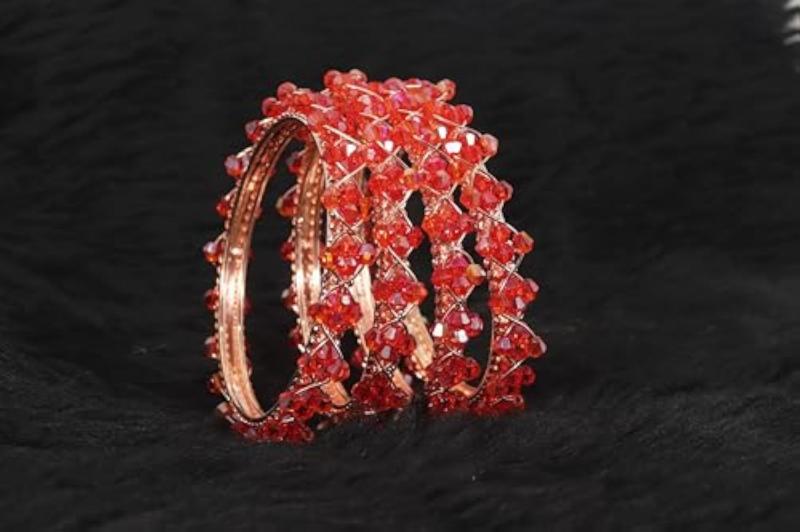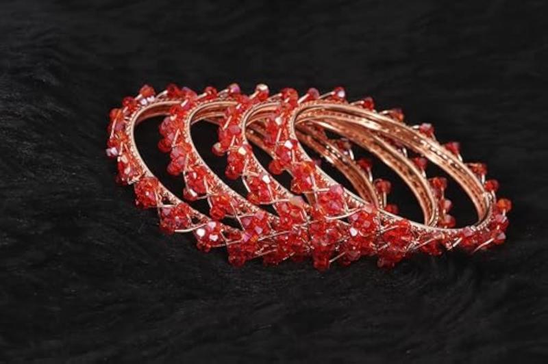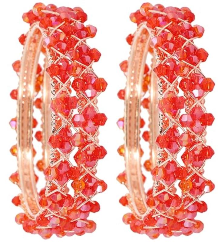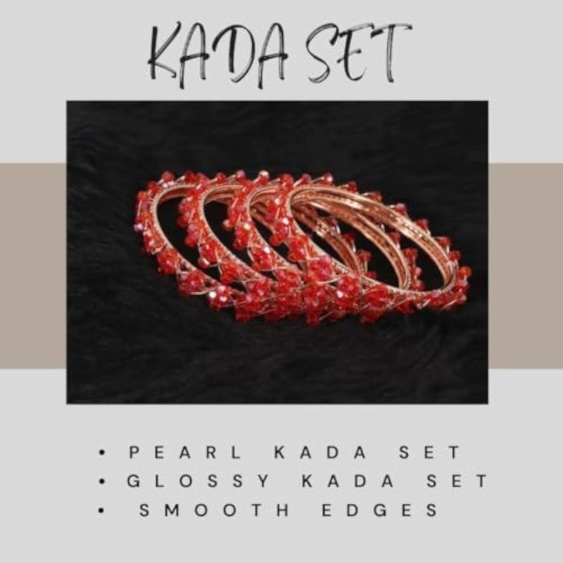 This elegant bangles set and kada bracelet is perfect for weddings, parties, festivals, and everyday wear. It features a beautiful combination of pearls, beads, and metal for a sophisticated look.