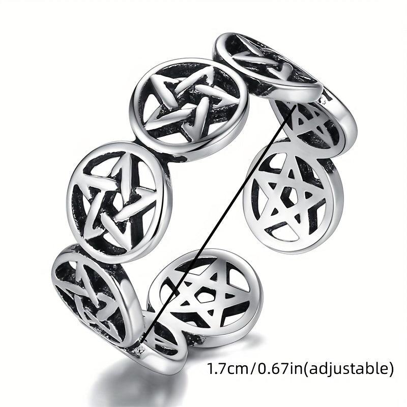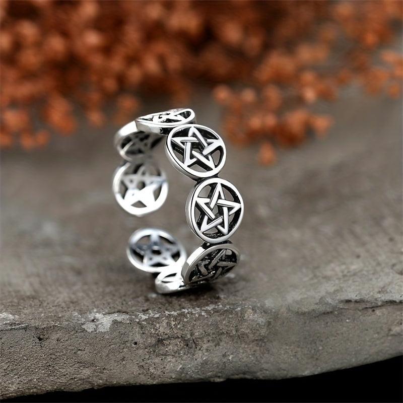 Elevate your outfit with this unique and trendy pentagram open ring that adds a touch of creativity to your look.