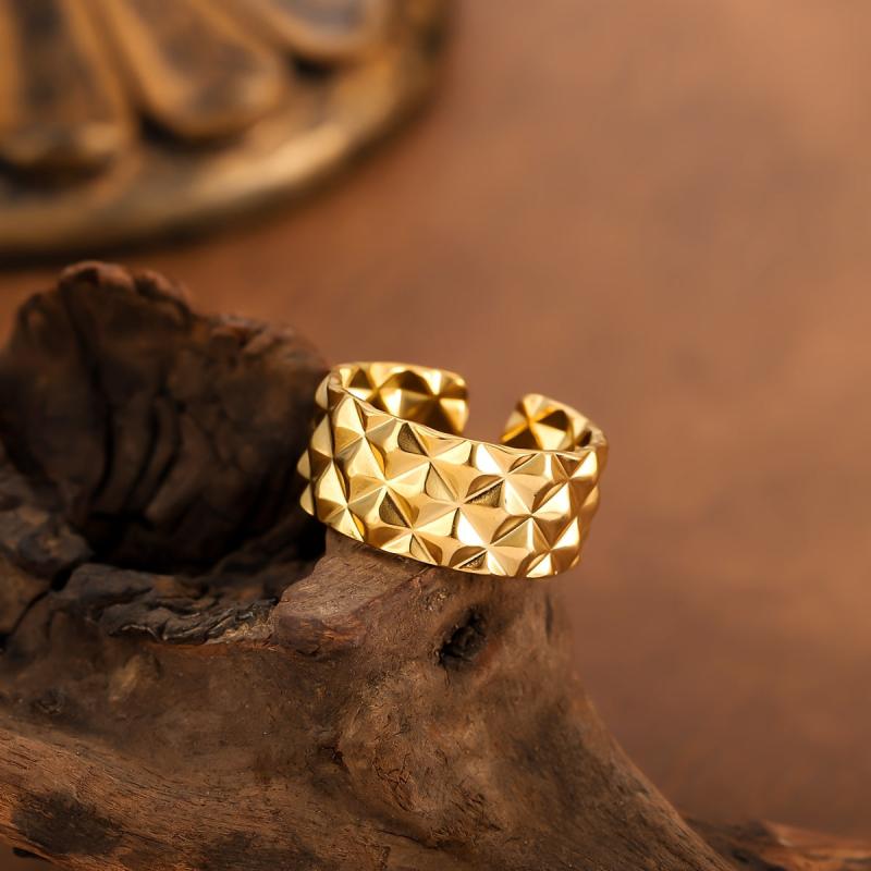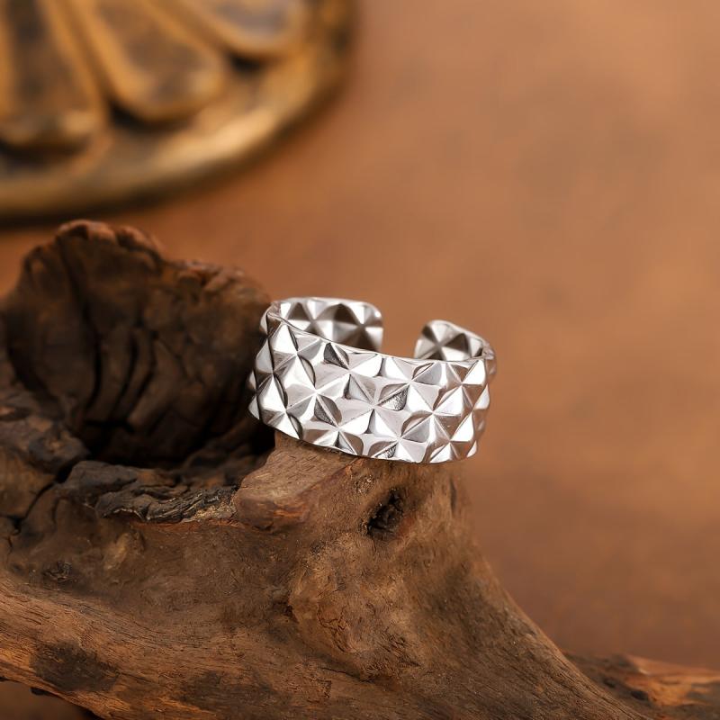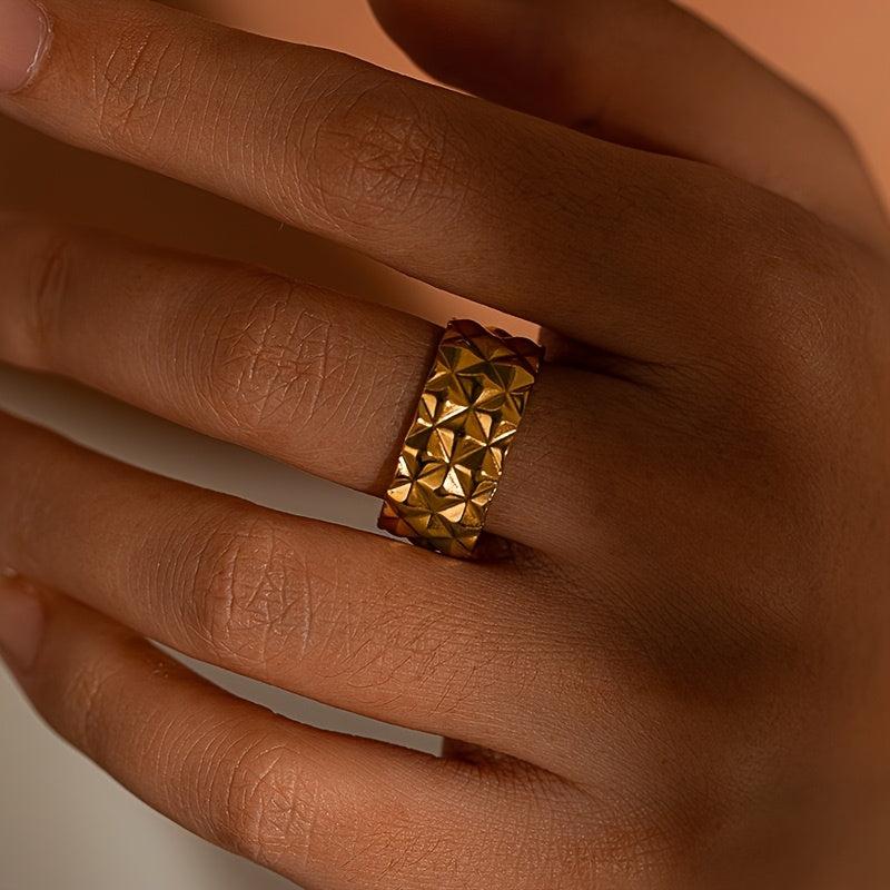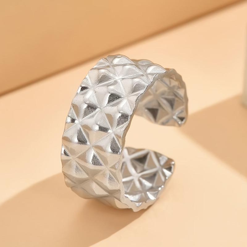 Elevate your style with this versatile textured stainless steel ring that showcases a unique and artistic design.