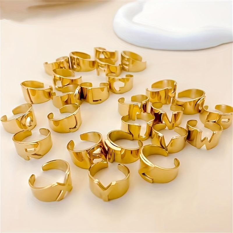 Get ready for the school season with this trendy and customizable stainless steel ring featuring 26 English letters. It's perfect for daily wear and adds a touch of personal style to your outfit.