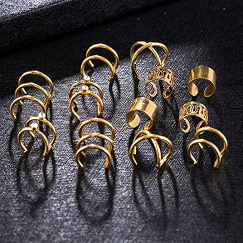 Elevate your style with this combo set of plated ear cuffs featuring 5 unique designs. Perfect for adding a trendy touch to your look.