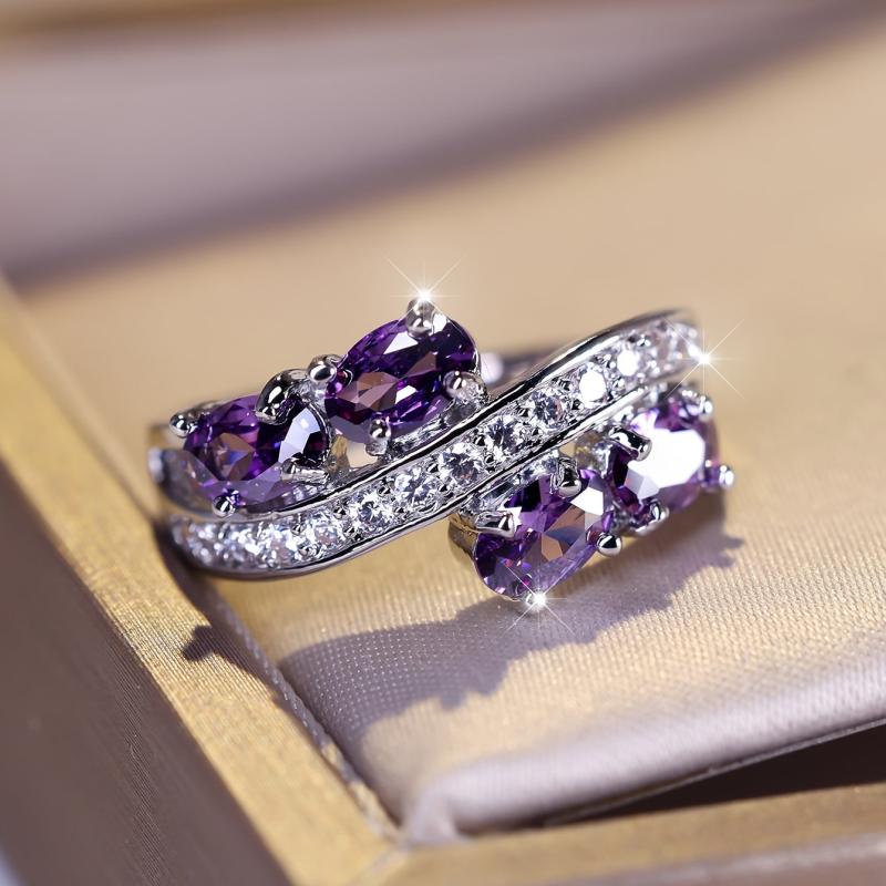 Add a touch of creativity to your wedding with this uniquely designed purple zirconia ring that exudes style and personality.
