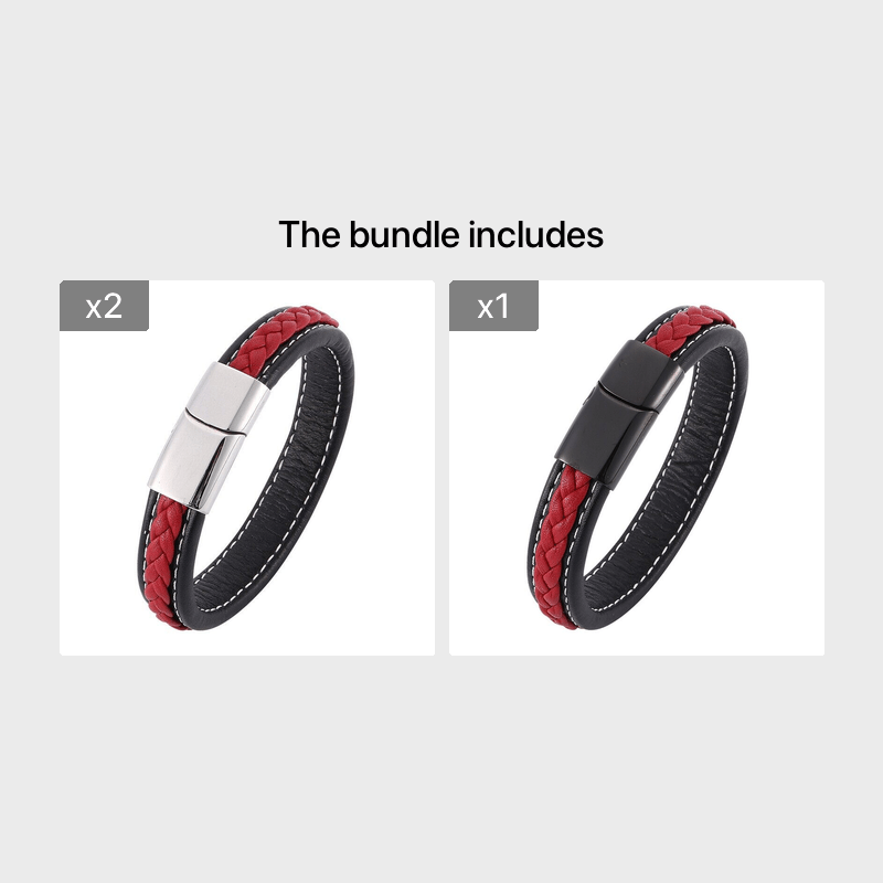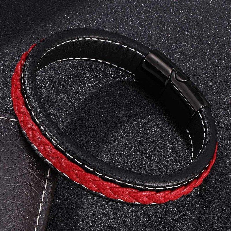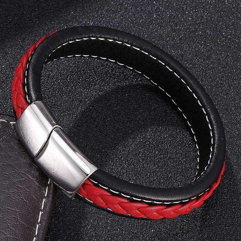 Stylish Red Leather Bracelet with Stainless Steel Buckle