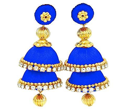 Elevate your style with these fashionable double decker silk jhumkas earrings that add a touch of elegance to any outfit.