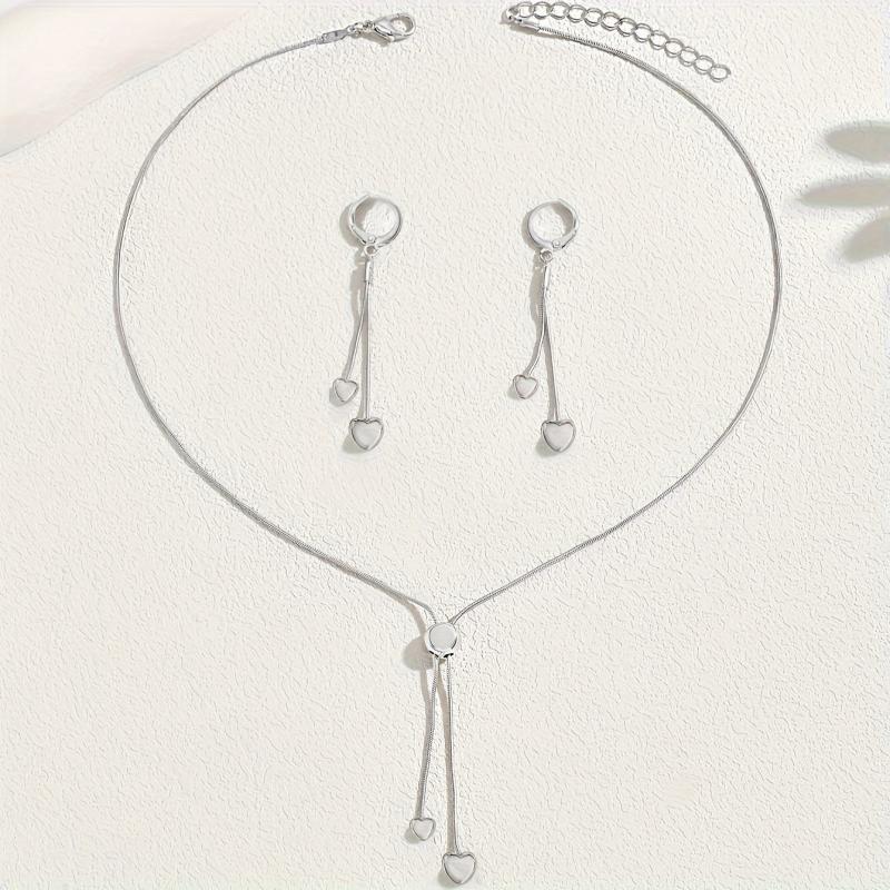 Elevate your style with this fashionable jewelry set featuring a snake bone chain necklace with an adjustable love pendant. Perfect for adding a trendy touch to your look.