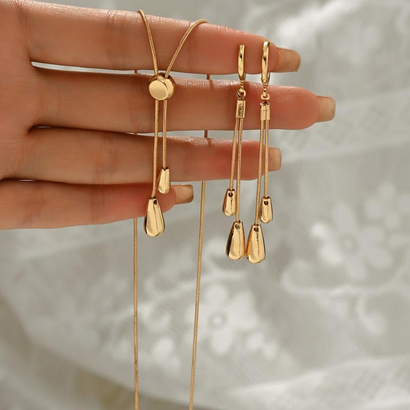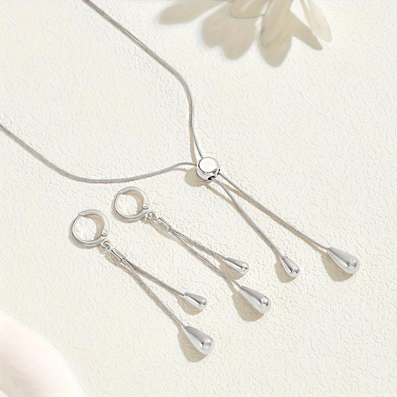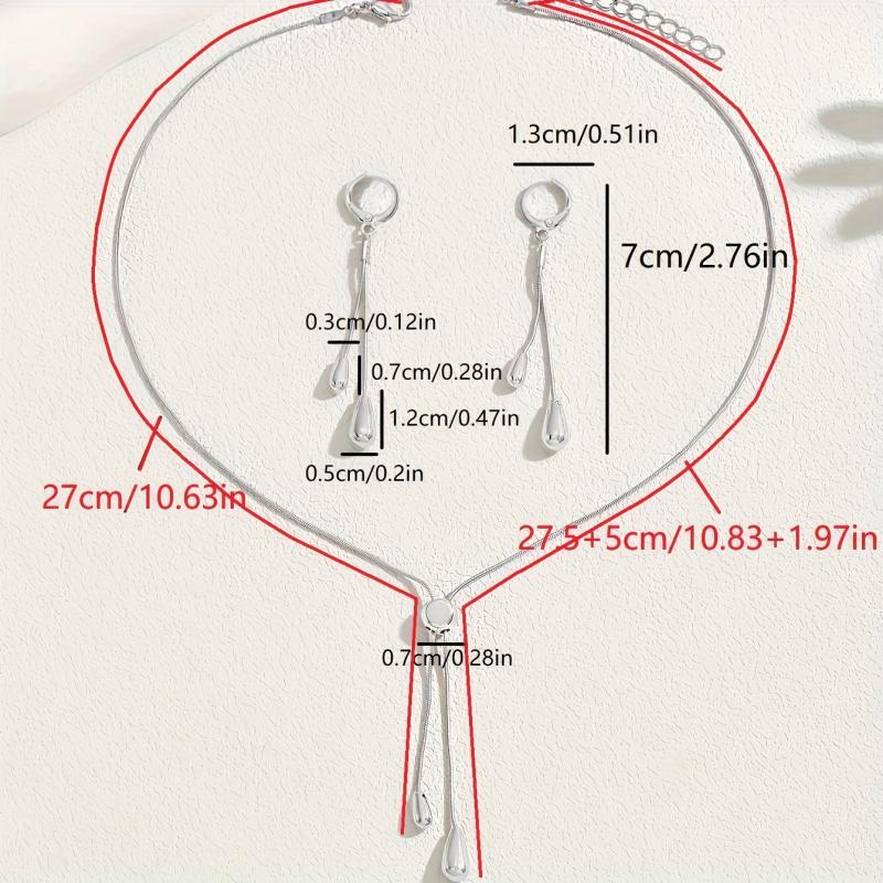 Elevate your look with this fashionable set of 2 jewelry pieces. It features a stylish snake bone chain with an adjustable length water drop pendant necklace.