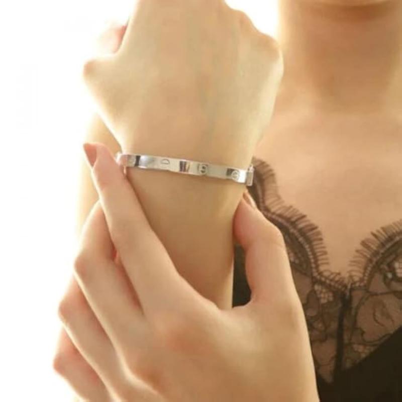 Elegant stainless steel bracelet adorned with sparkling crystals, perfect accessory for any outfit.