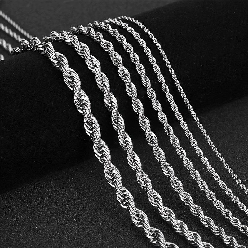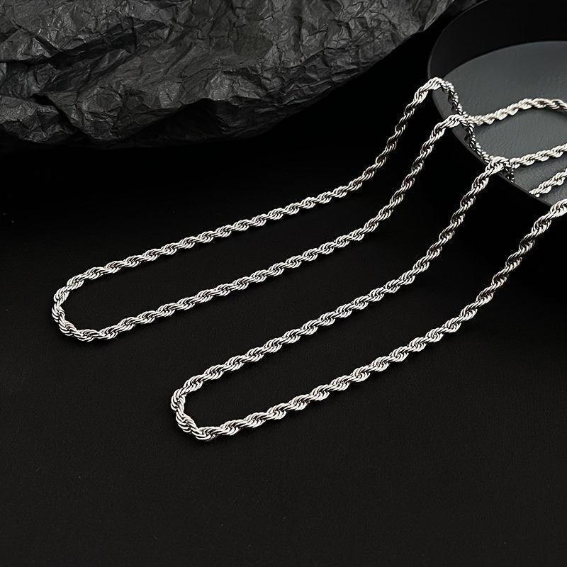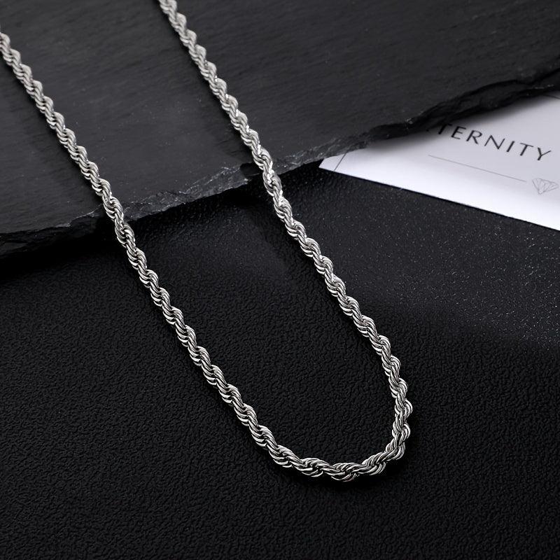 Elevate your style with this sleek stainless steel twist chain designed for men. It adds a touch of sophistication to any outfit.