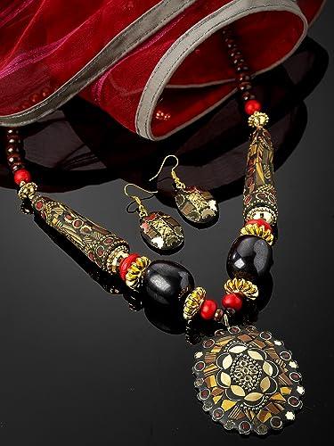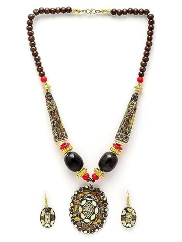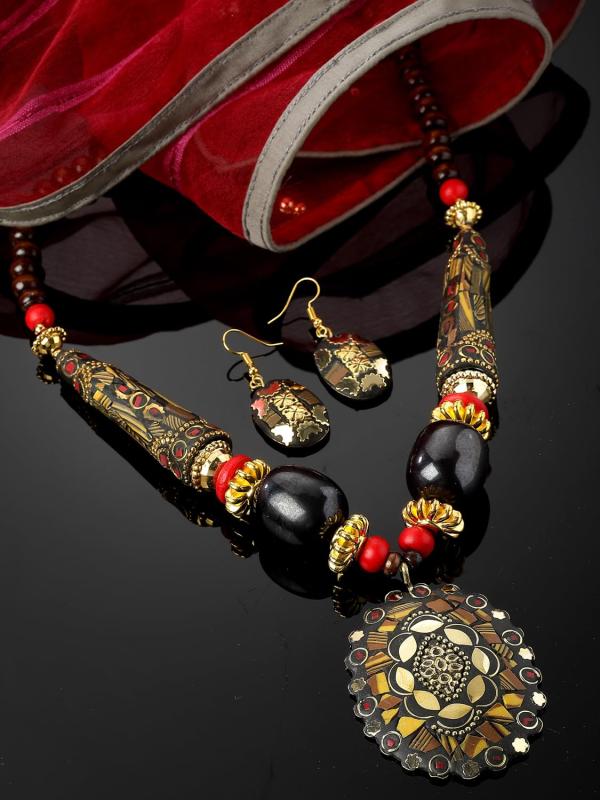 Elegant traditional Tibetan pendant necklace with oxidised finish.