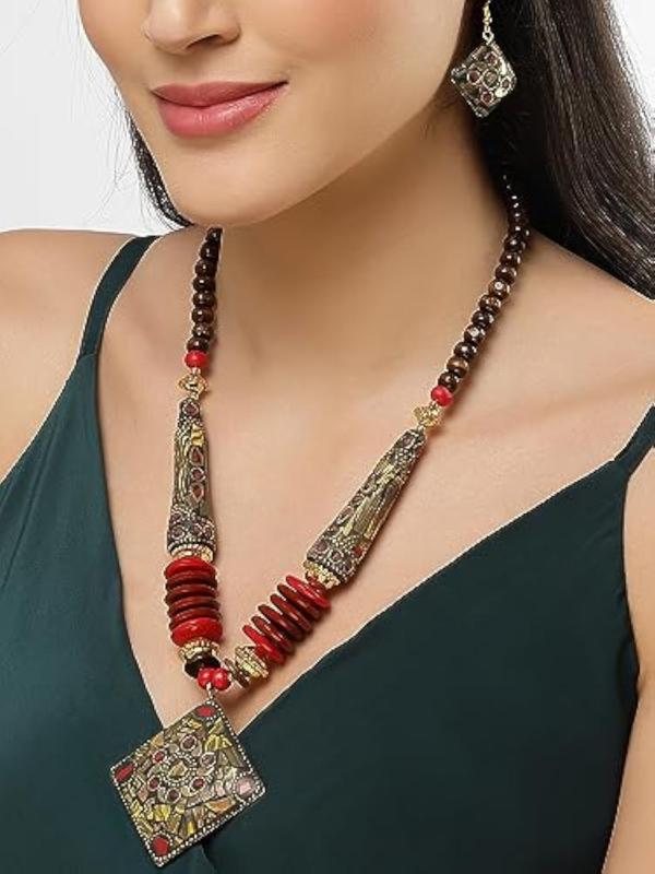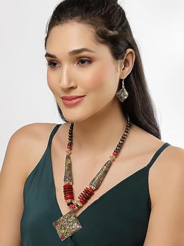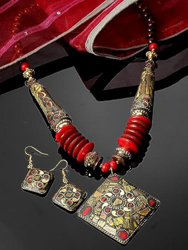 Elegant Tibetan pendant necklace set ideal for traditional wear