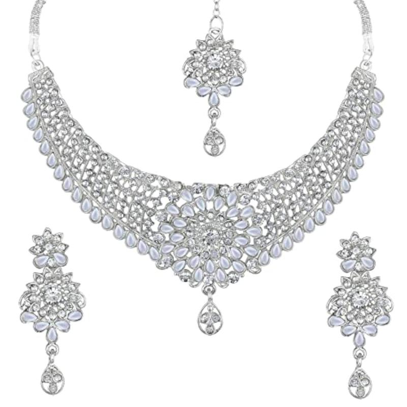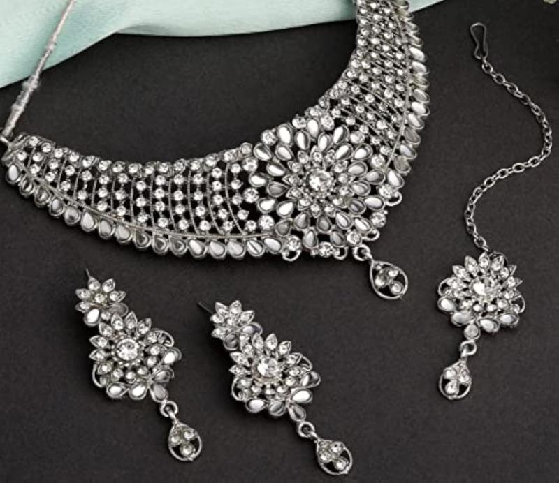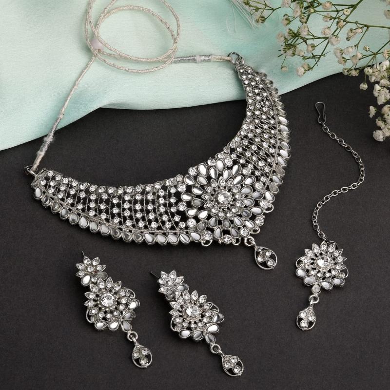 Elegant choker necklace set featuring diamond studs, perfect for traditional occasions.