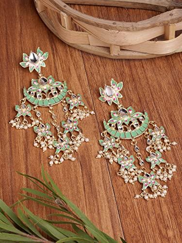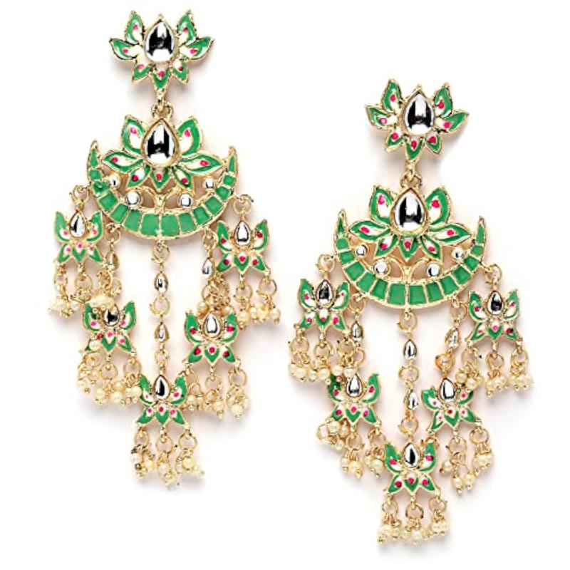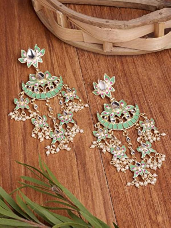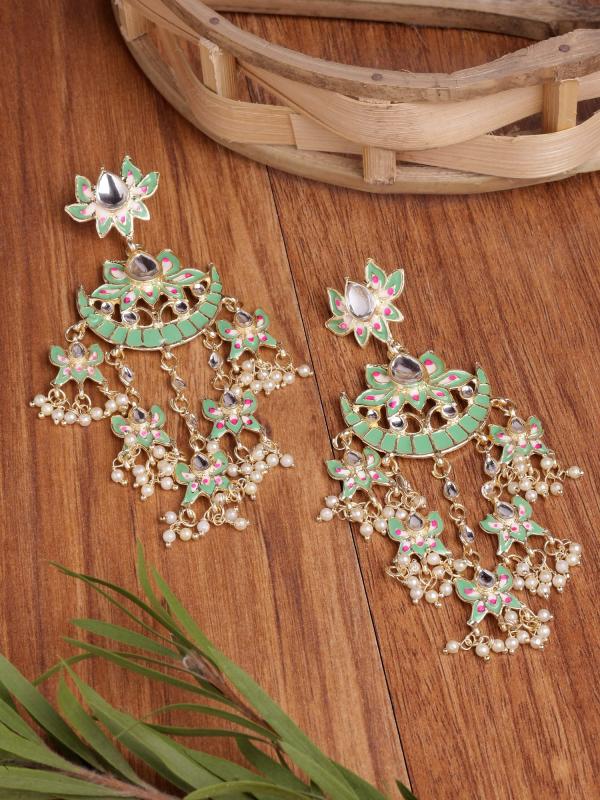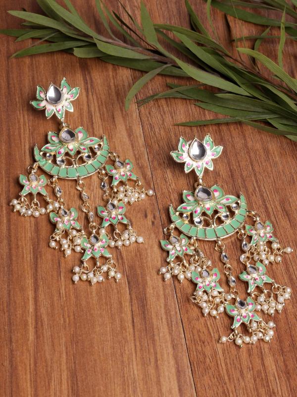 Enhance your ethnic look with these elegant Kundan earrings. Perfect for traditional occasions and festivals.