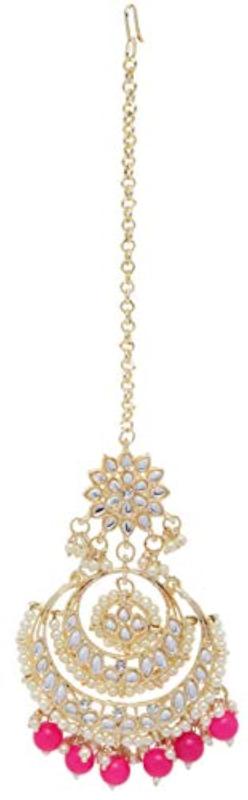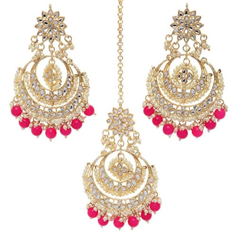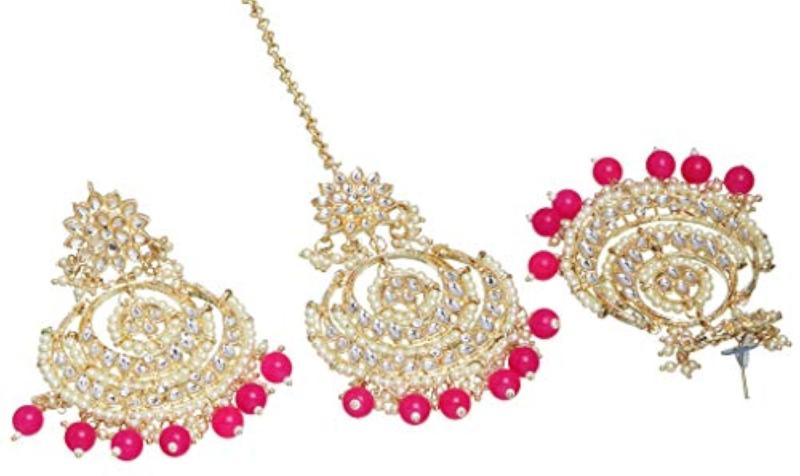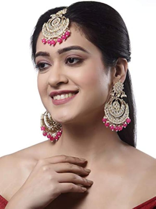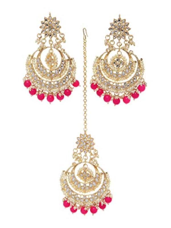 Enhance your style with this exquisite Kundan maang tikka earrings set. Perfect for traditional events and festivals.