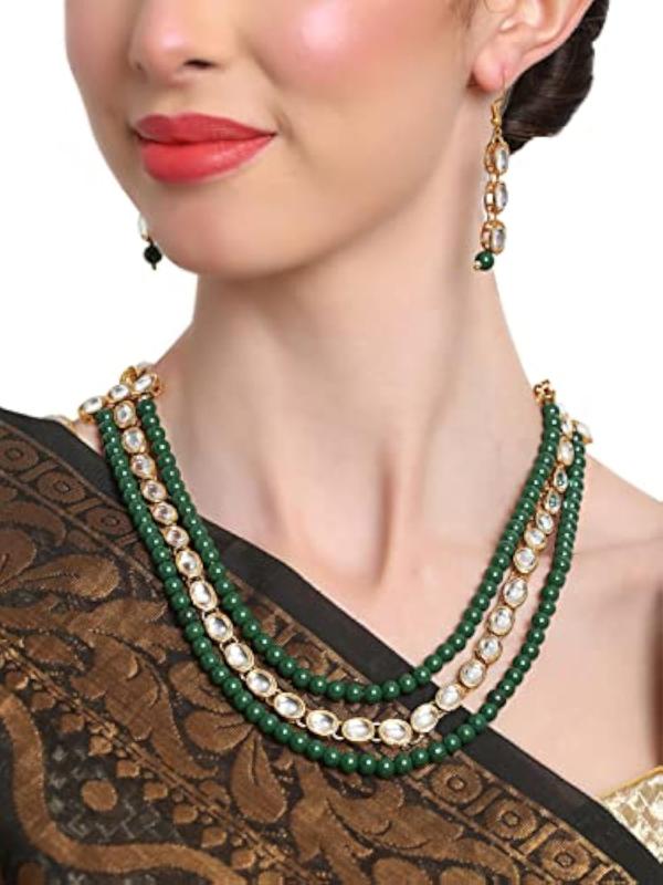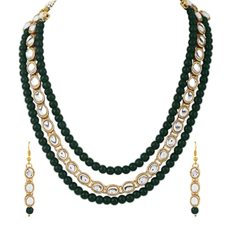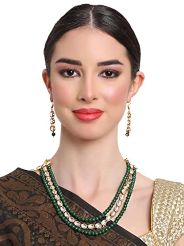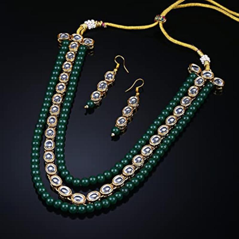 Elegantly designed fancy long necklace set with traditional Kundan work.