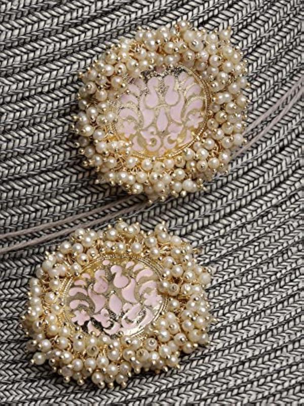 Elegant and classic pearl stud earrings that add a touch of sophistication to any outfit.