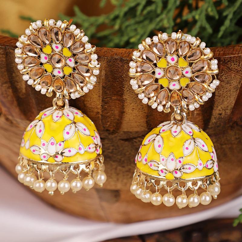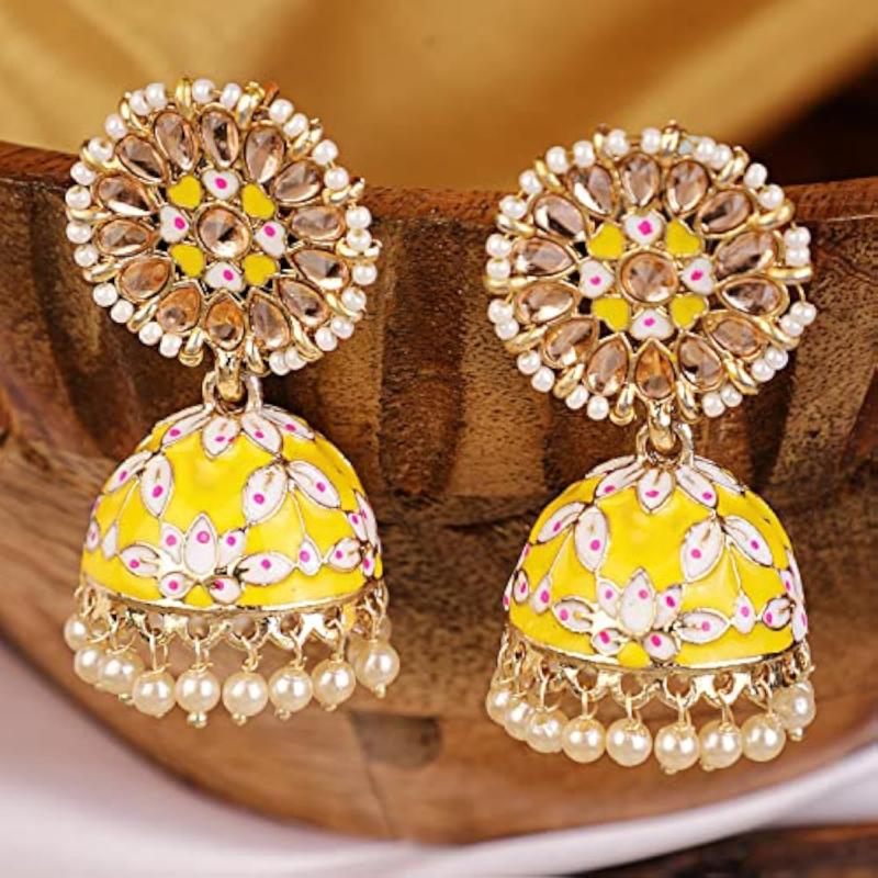 Enhance your look with these elegant plated jhumki earrings. Perfect for traditional occasions.