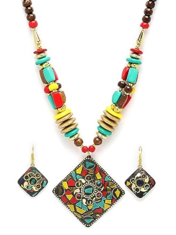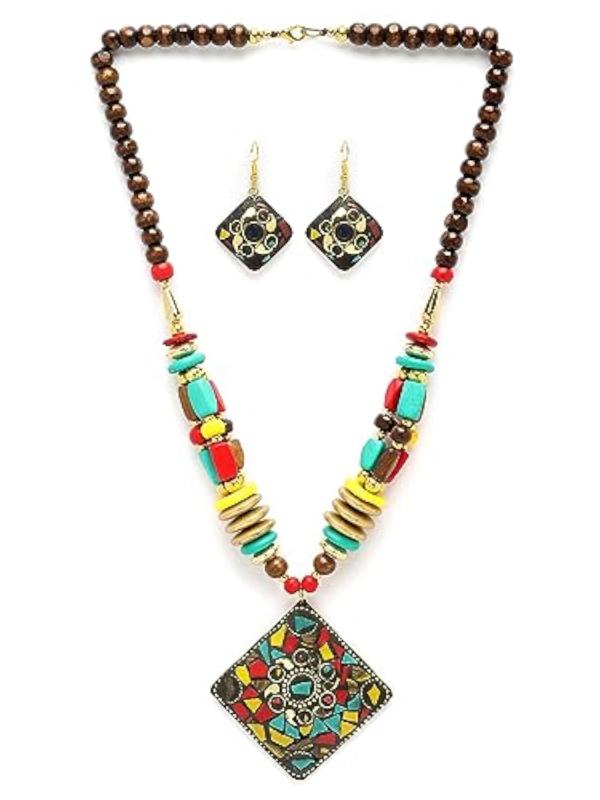 Elegant and stylish Tibetan pendant necklace set for a touch of tradition and fashion.