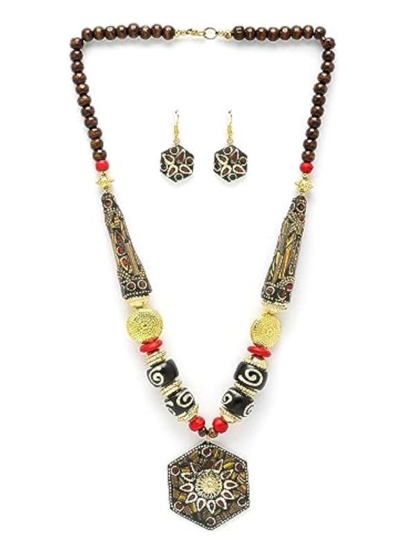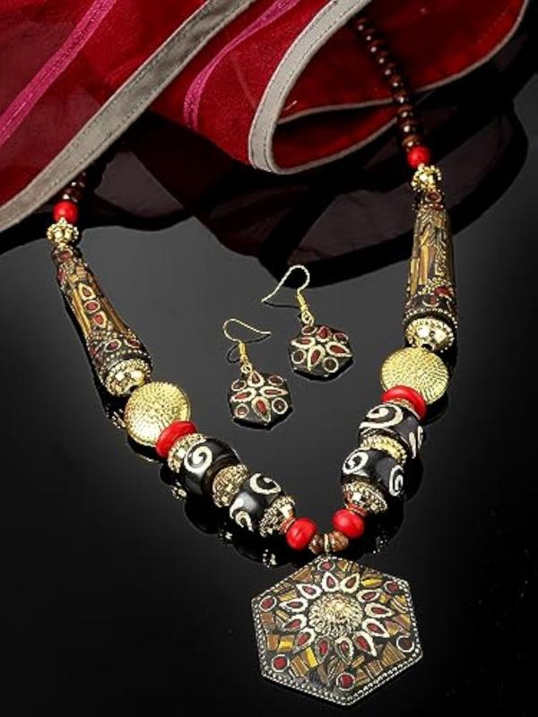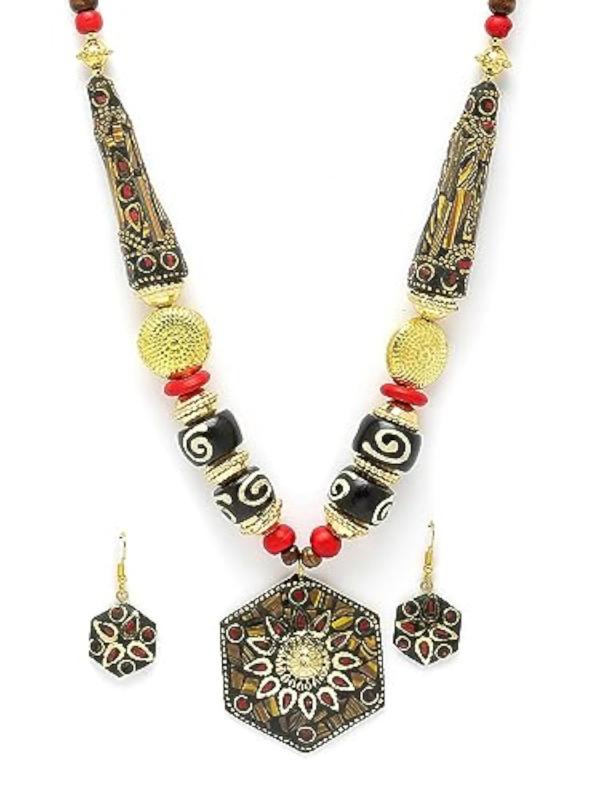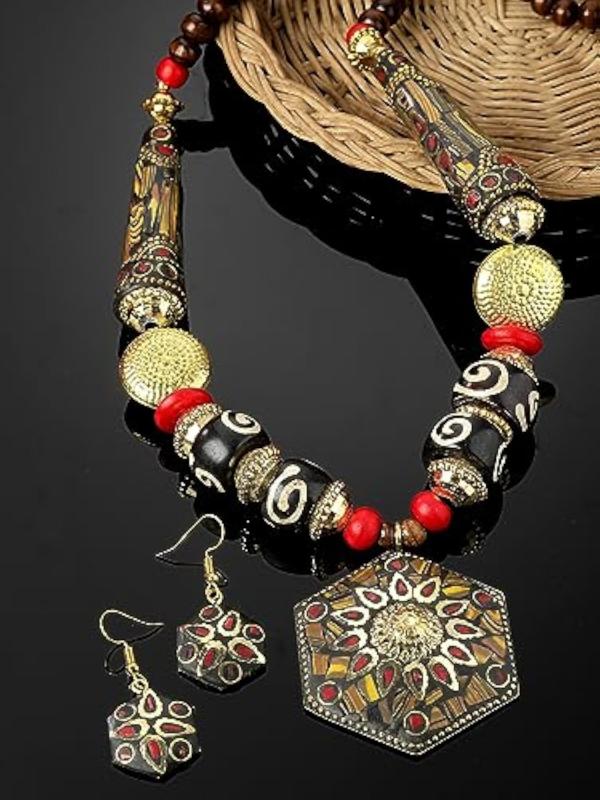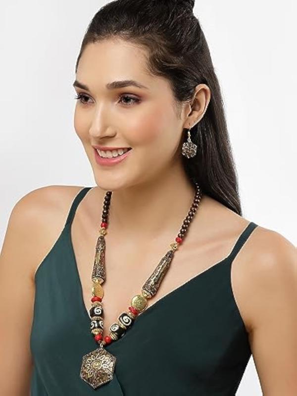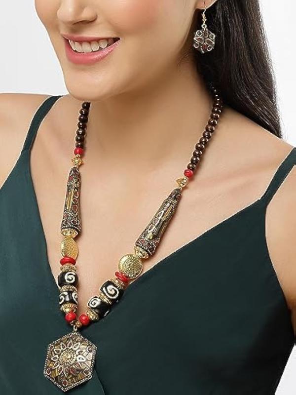 Elegant and unique, this Tibetan pendant necklace set is a perfect accessory to complement your traditional style.