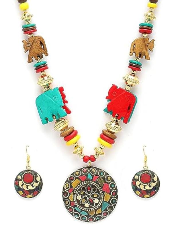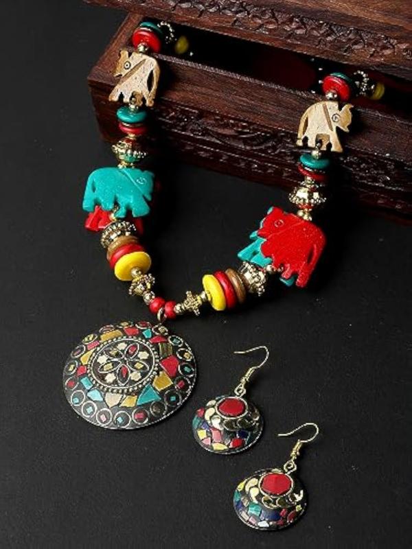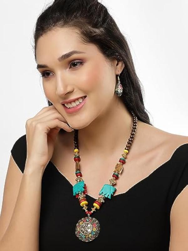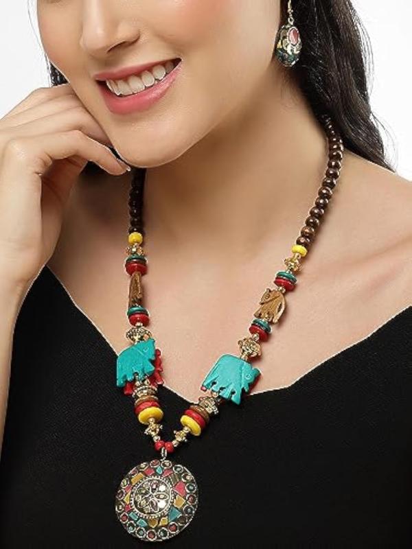 Elegant Tibetan pendant necklace set that adds a touch of traditional style to your outfit.