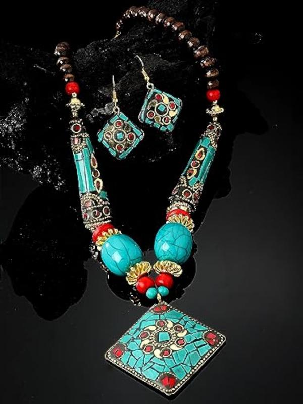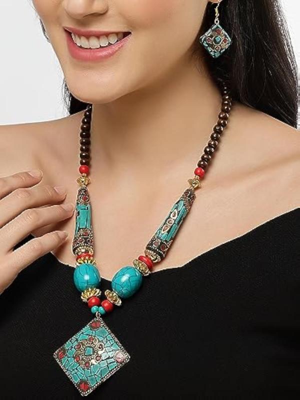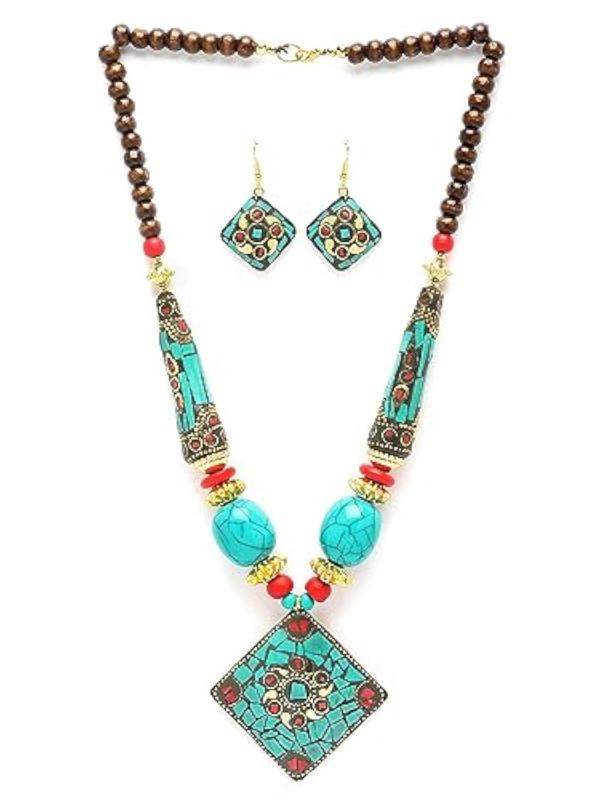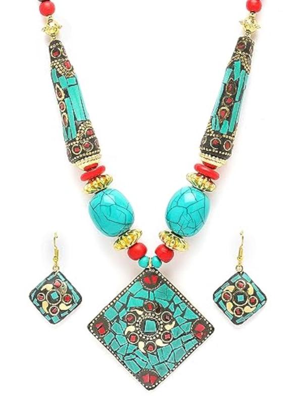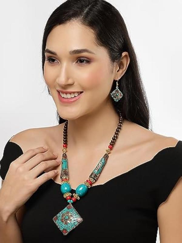 Elegant pendant necklace jewellery set with a traditional Tibetan design.