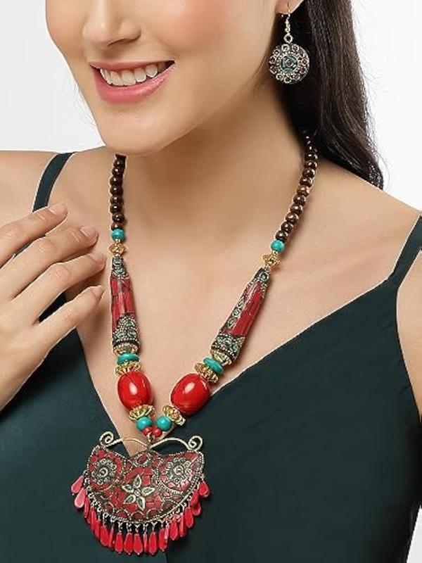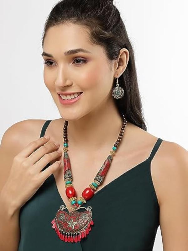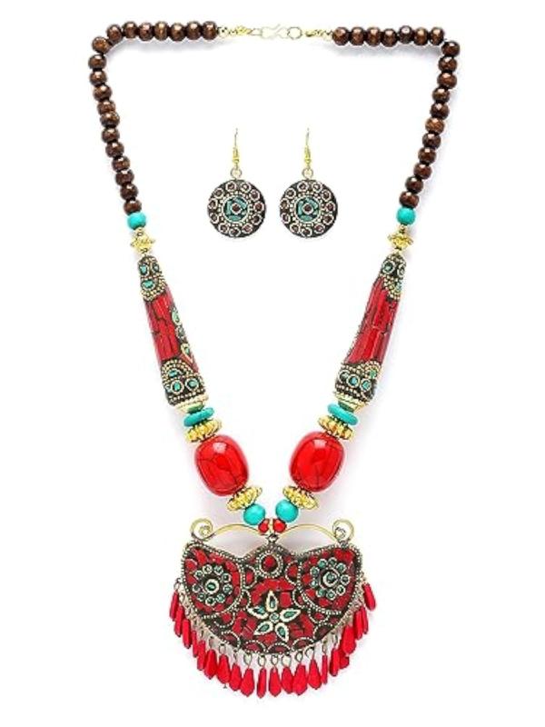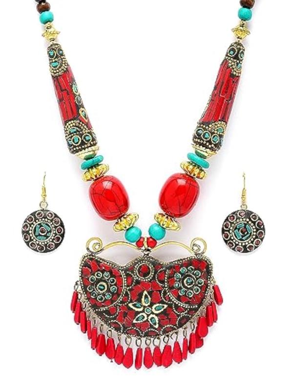 Explore the beauty of Tibetan culture with this elegant pendant necklace set.